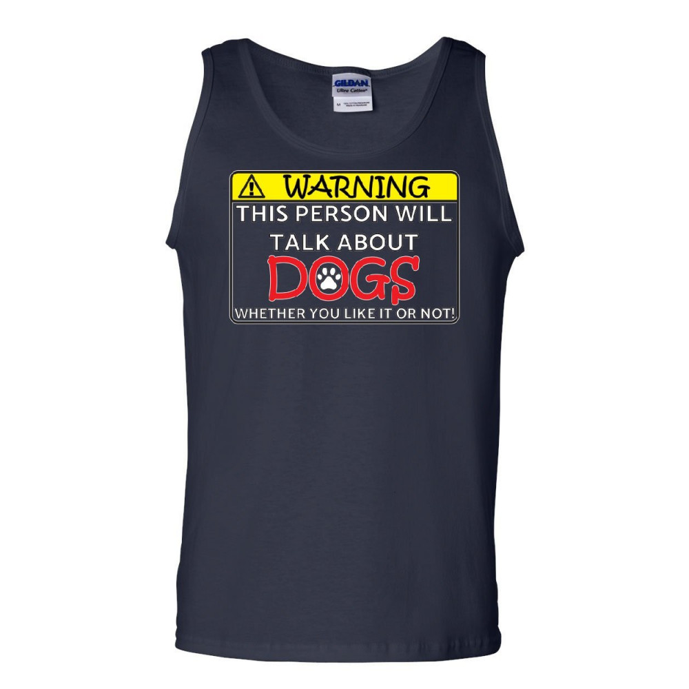 WARNING! THIS PERSON WILL TALK ABOUT DOGS tank top puppy pet paw sleeveless navy blue