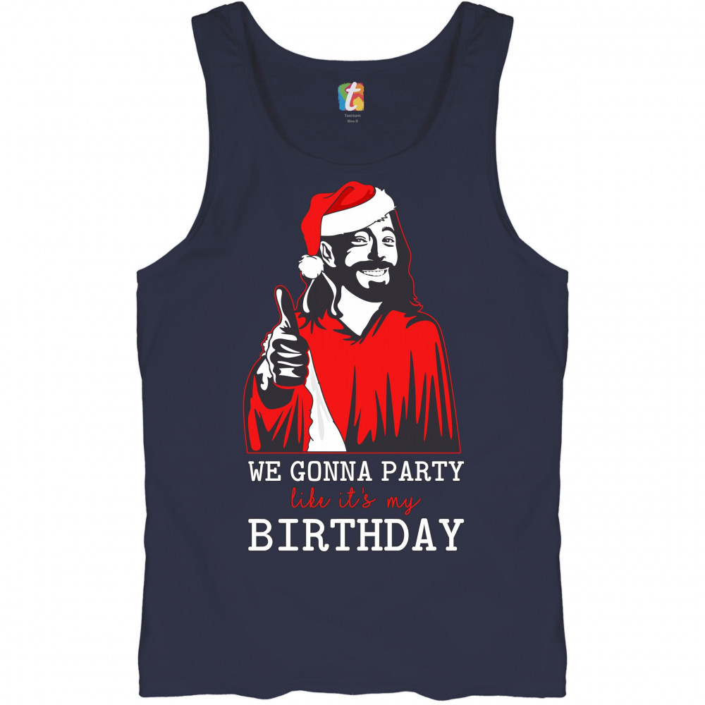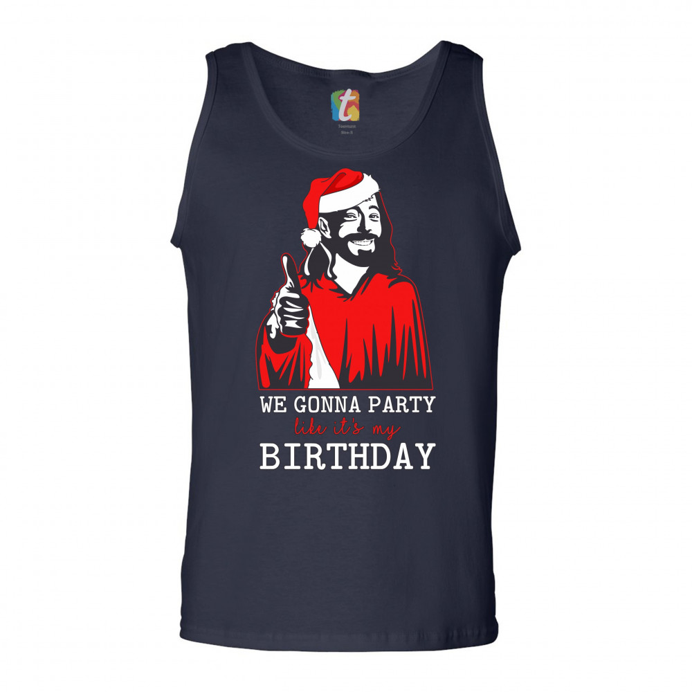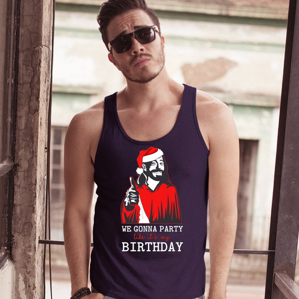 WE GONNA PARTY LIKE IT'S MY BIRTHDAY tank top jesus christ xmas men's top navy blue