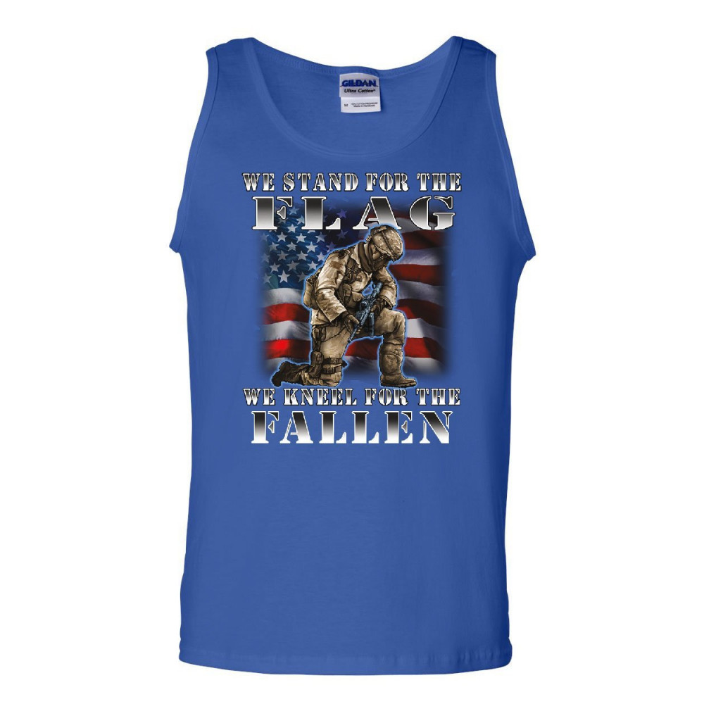 WE STAND FOR THE FLAG tank top veteran military pow mia army navy sleeveless blue