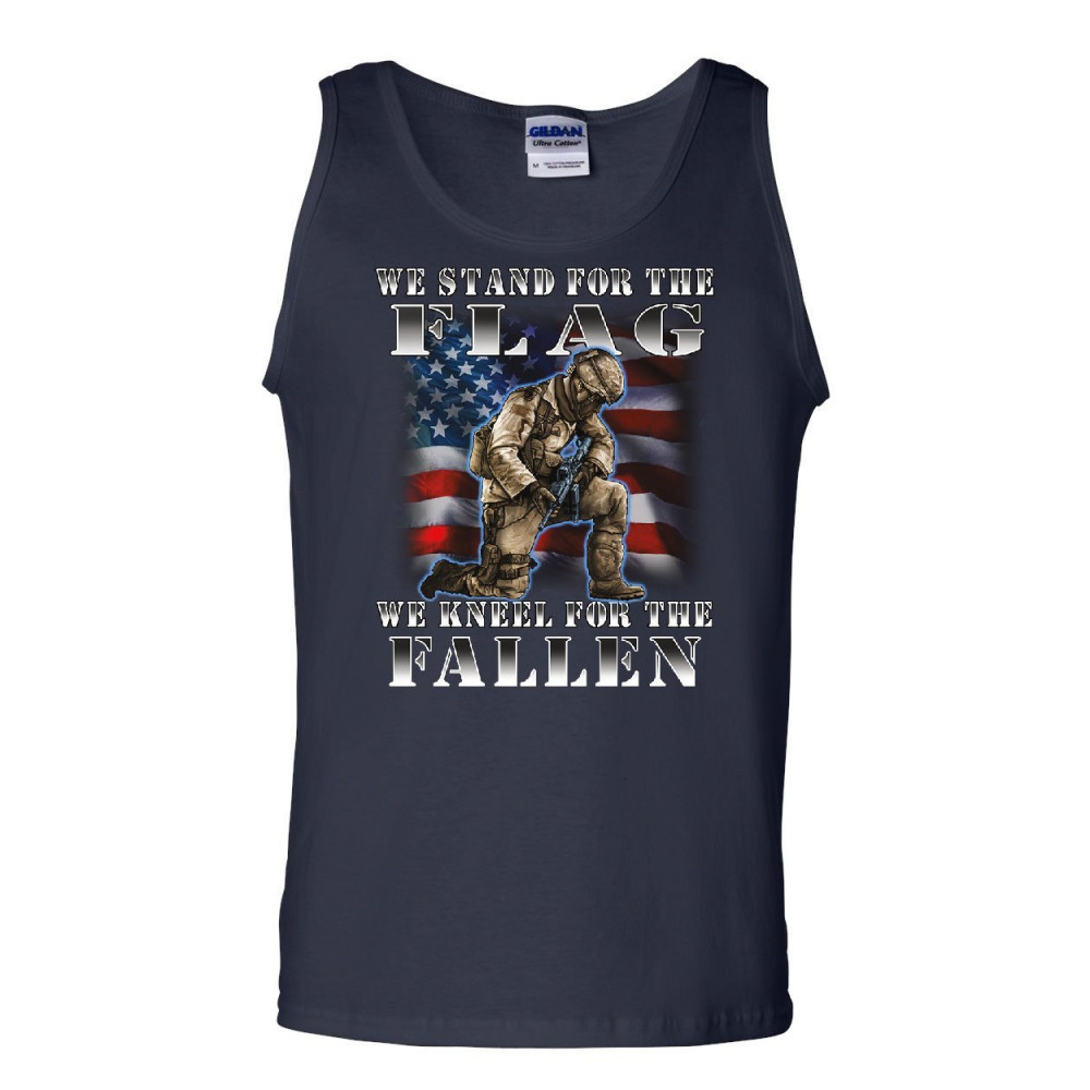 WE STAND FOR THE FLAG tank top veteran military pow mia army navy sleeveless navy blue