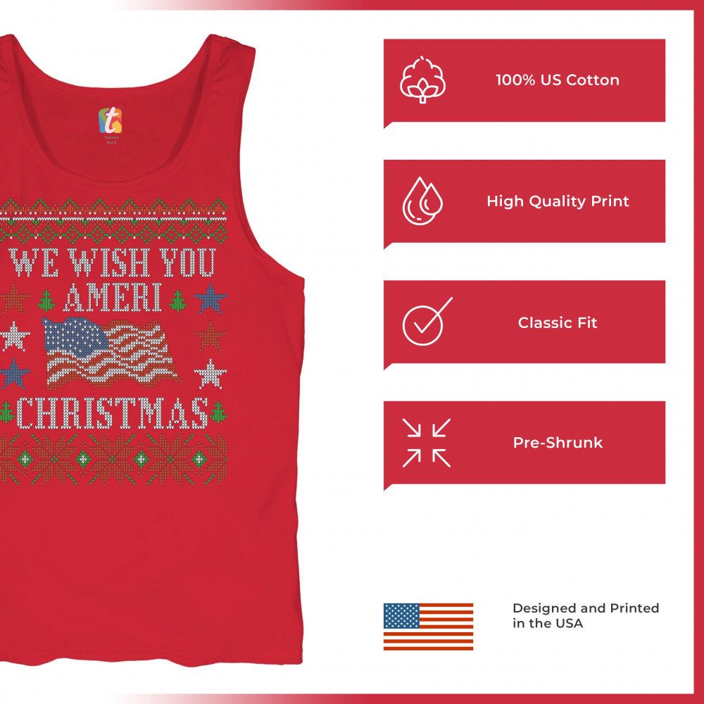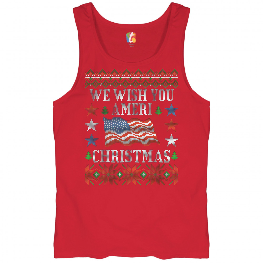 WE WISH YOU AMERI CHRISTMAS tank top ugly sweater american flag men's top red