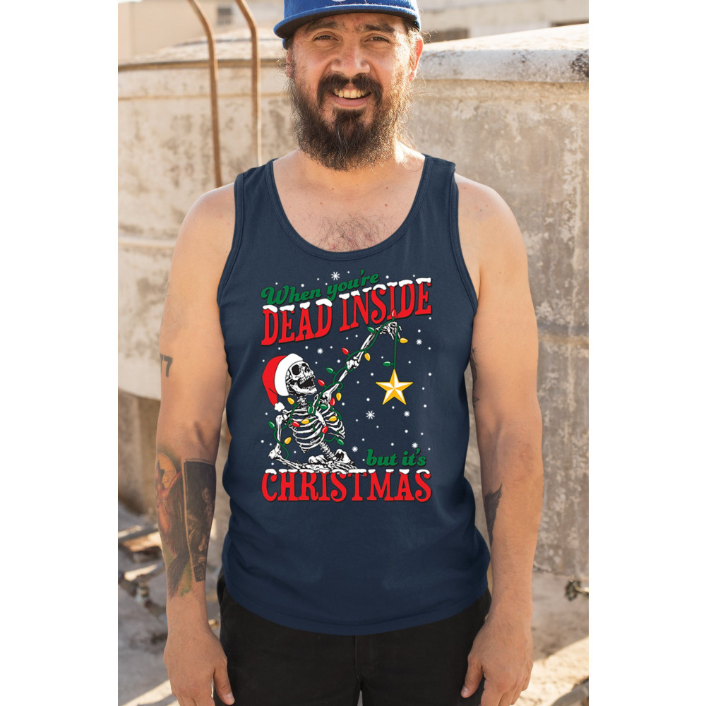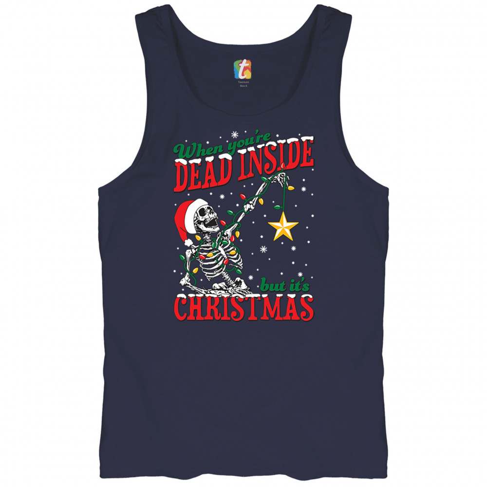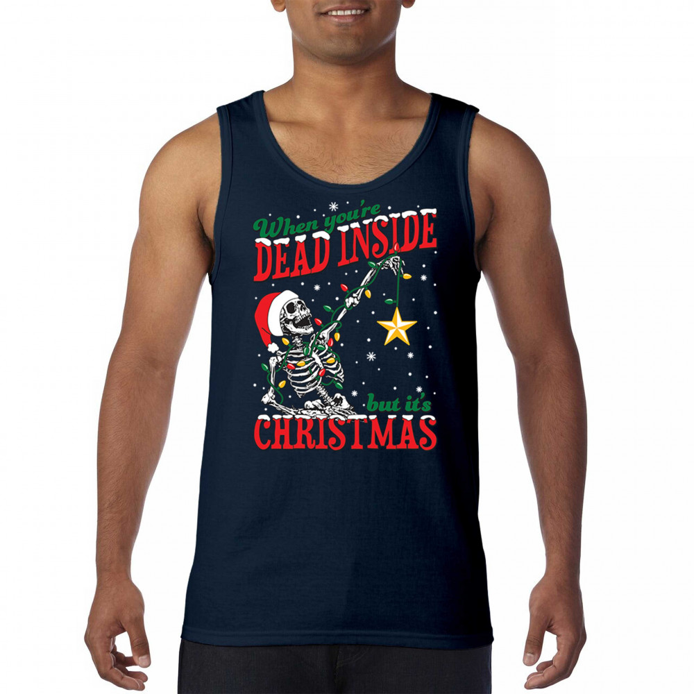 Celebrate humor and holiday spirit with the "When You're Dead Inside But It's Christmas" skeleton design. Perfect for parties and unique gifts.