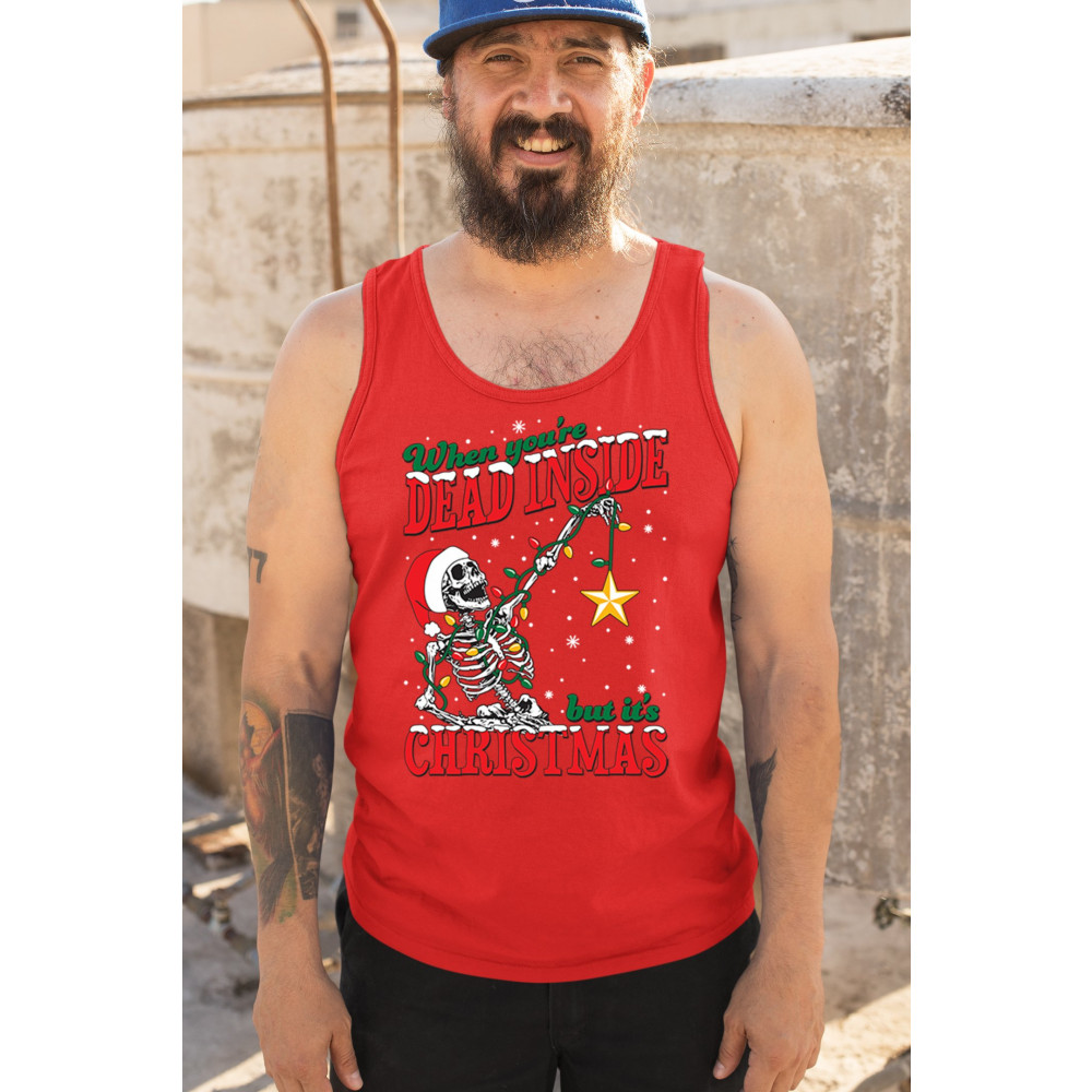 Celebrate humor and holiday spirit with the "When You're Dead Inside But It's Christmas" skeleton design. Perfect for parties and unique gifts.