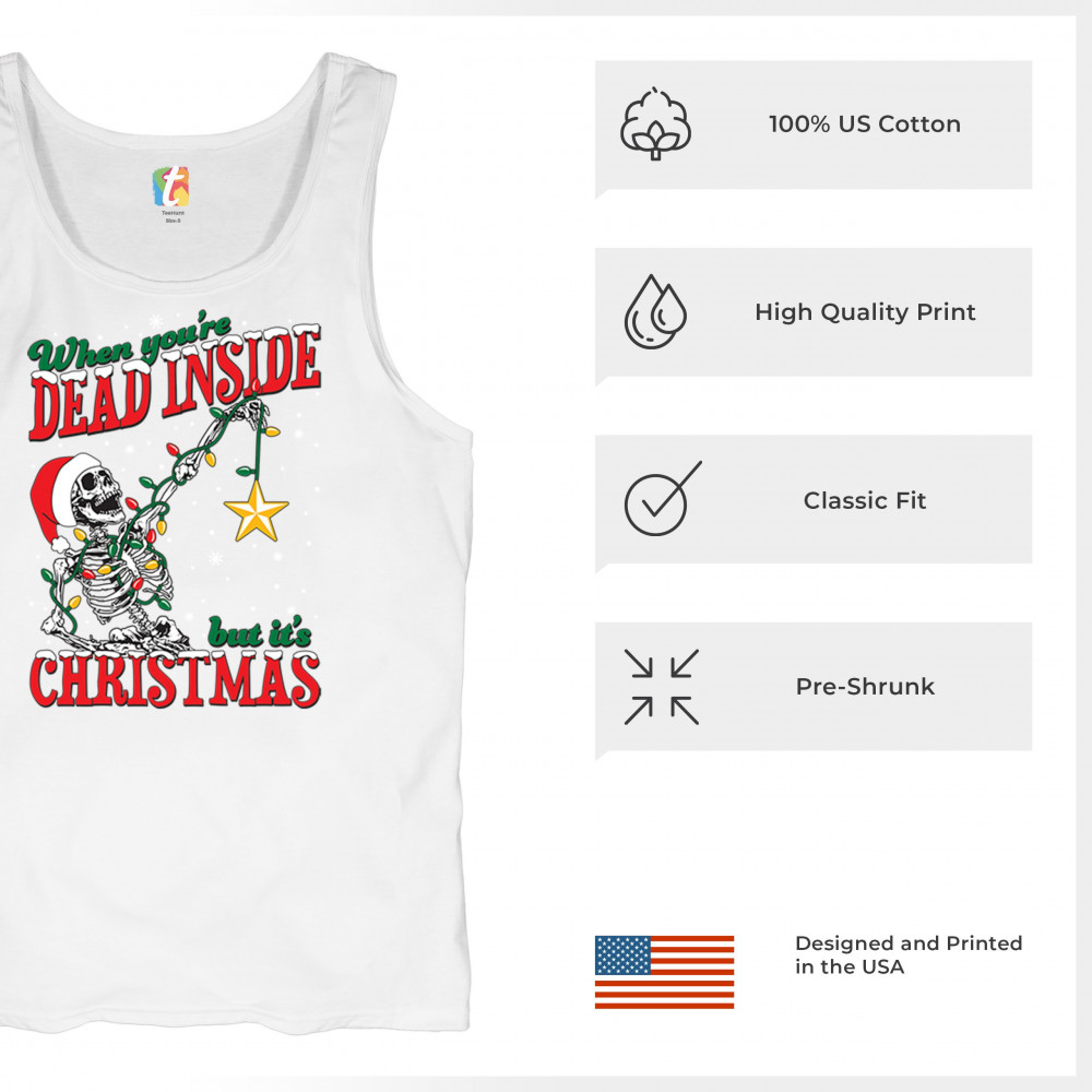 Celebrate humor and holiday spirit with the "When You're Dead Inside But It's Christmas" skeleton design. Perfect for parties and unique gifts.