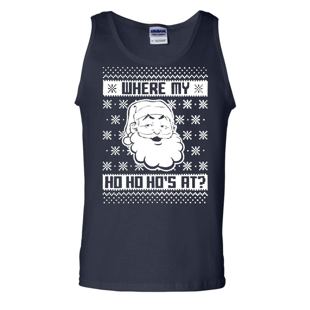 WHERE MY HO HO HO'S AT tank top ugly sweatshirt santa christmas xmas navy blue