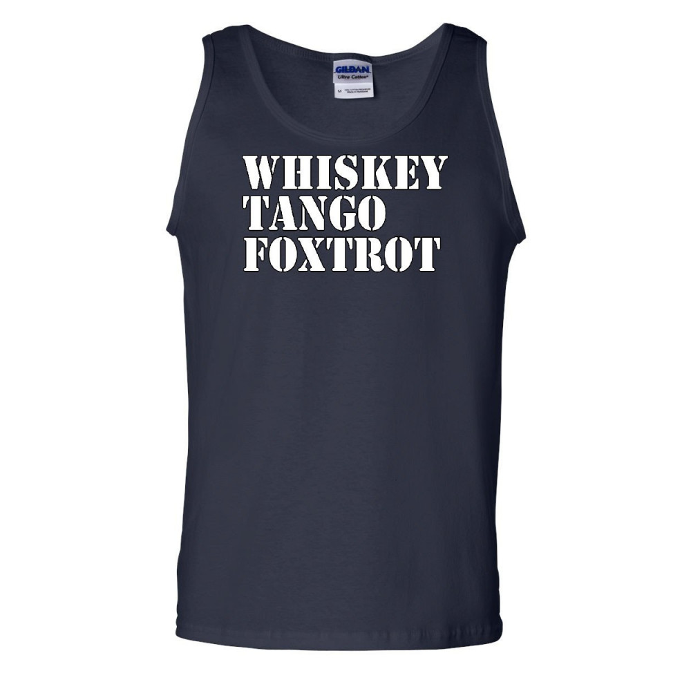WHISKEY TANGO FOXTROT tank top wtf funny navy blue