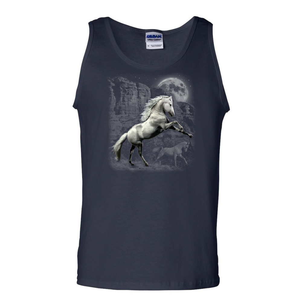 WHITE WILD HORSE tank top mustang nature animal lovers wildlife sleeveless navy blue