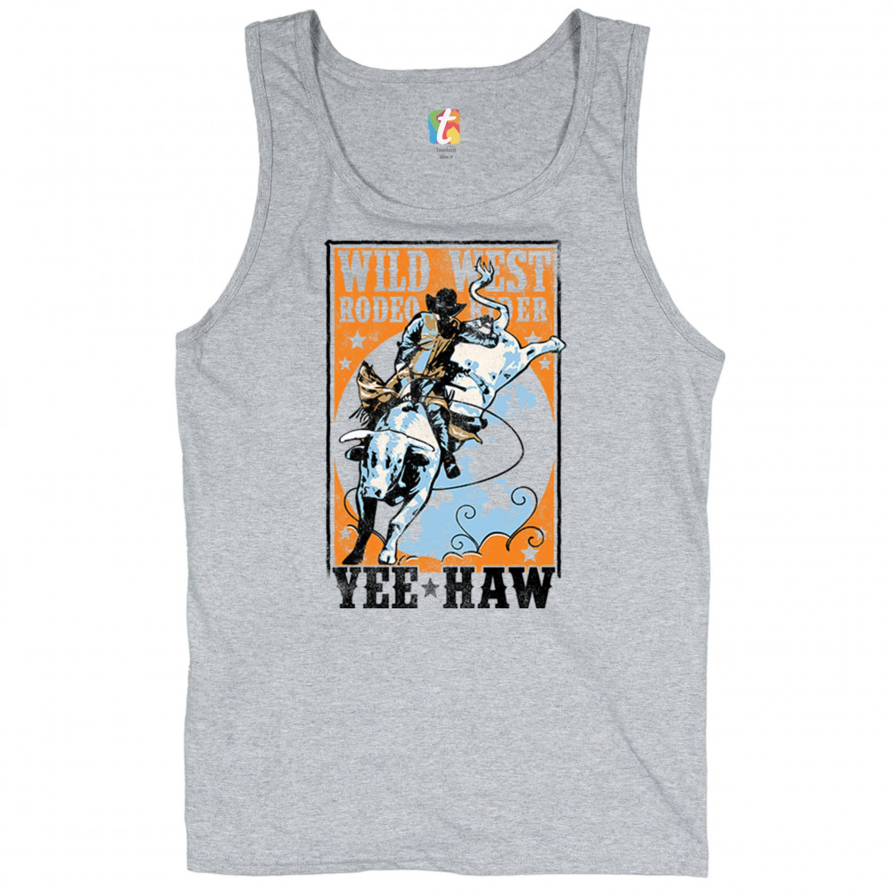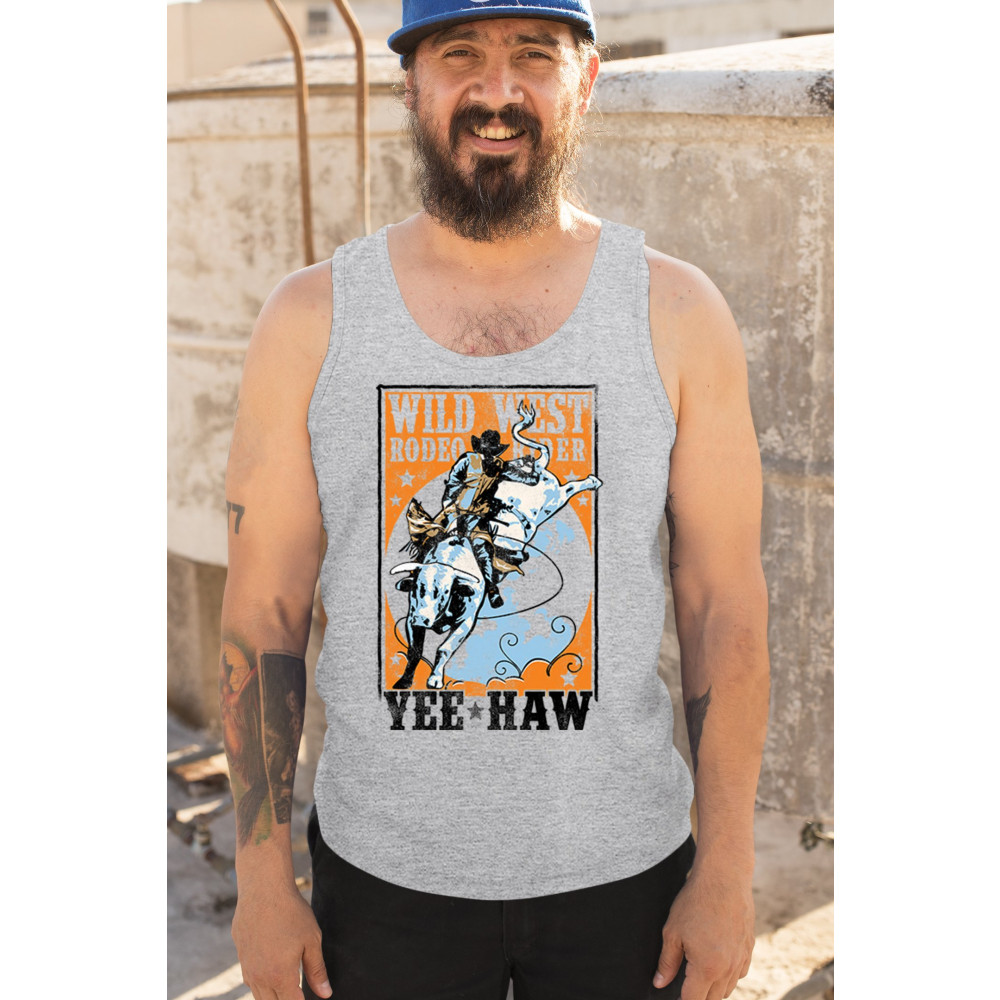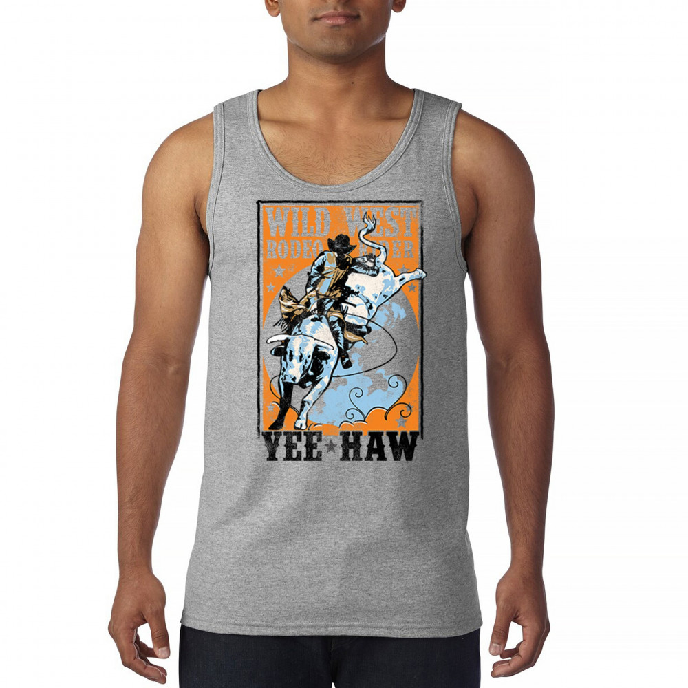 WILD WEST RODEO RIDER men's tank top bull riding cowboy ranch country life gray