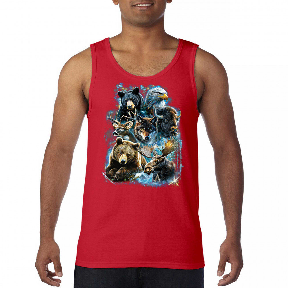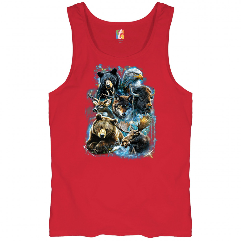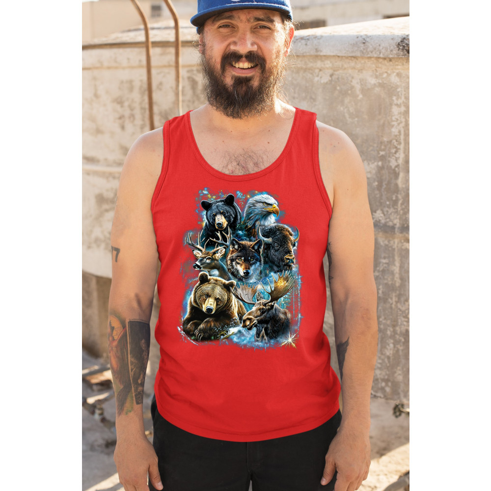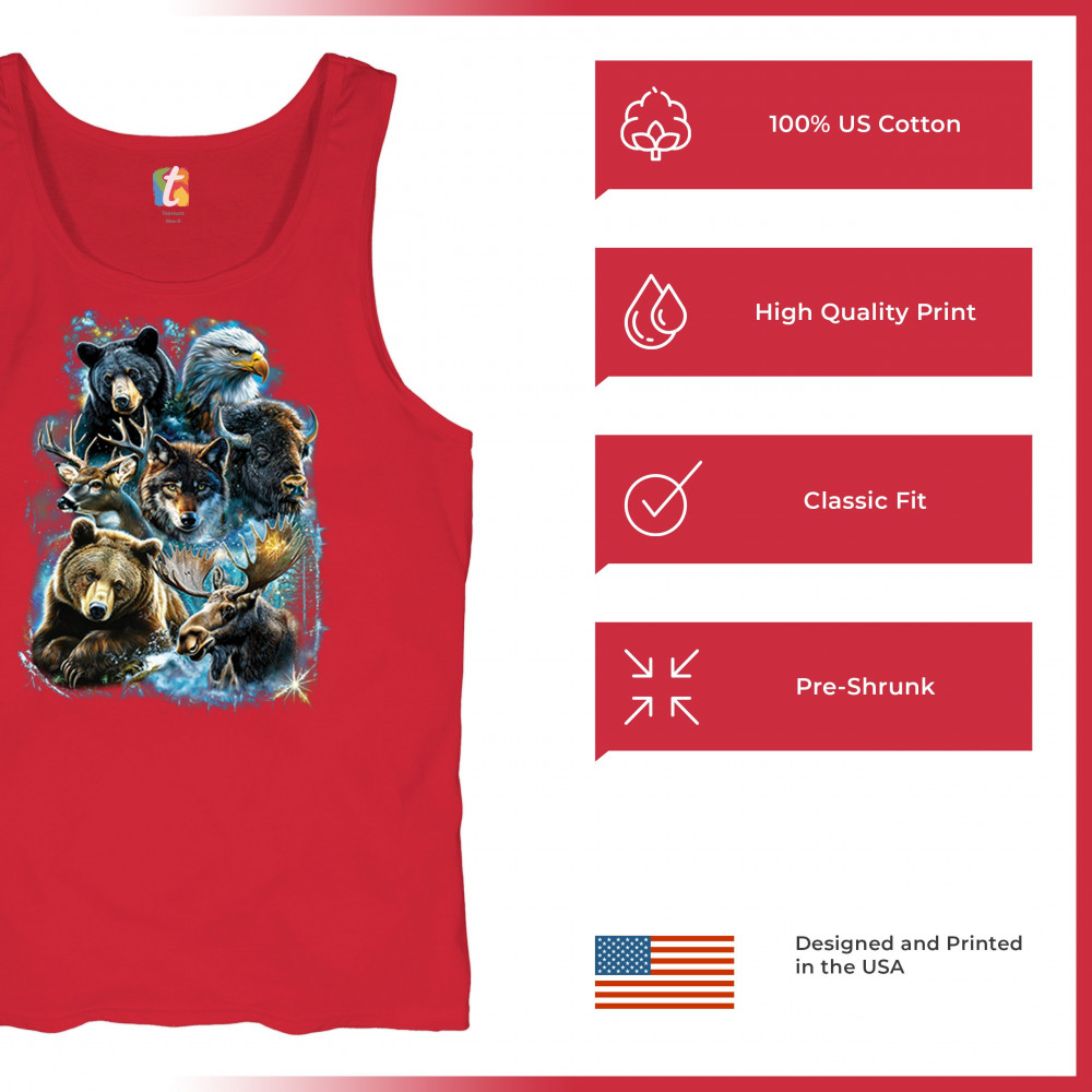 Wilderness design with moose, bear, eagle, bison, and wolf. A bold tribute to forest animals, nature strength, and rugged outdoor spirit.