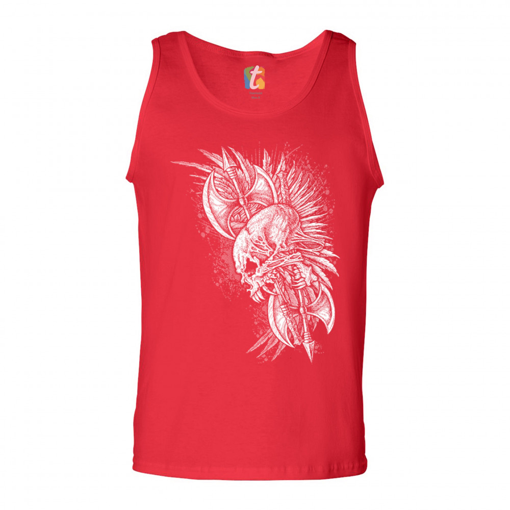 WINGED SKULL tank top viking warrior skeleton labrys axe gothic men's top red
