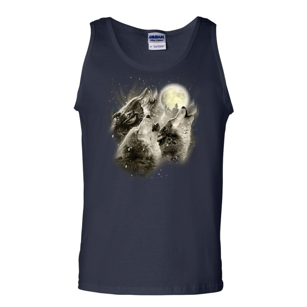 WOLF HOWL tank top wild wolf pack predator animals nature moon sleeveless navy blue