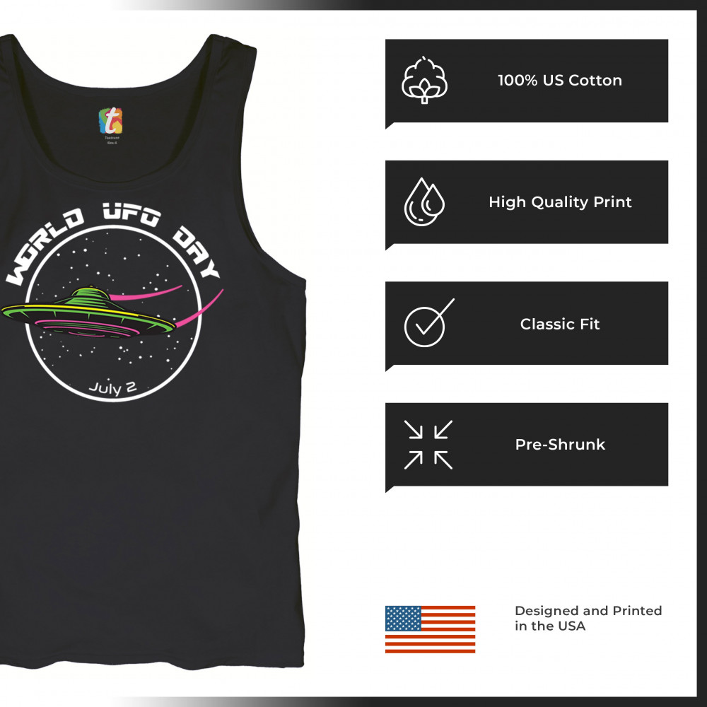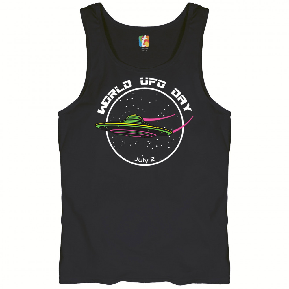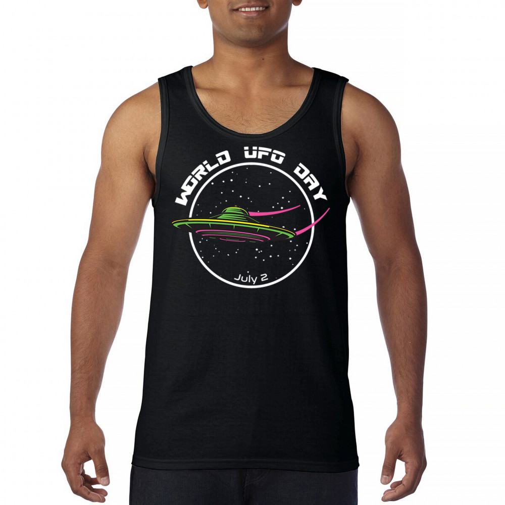 WORLD UFO DAY FLYING SAUCER tank top funny aliens area 51 july 2 men's top black