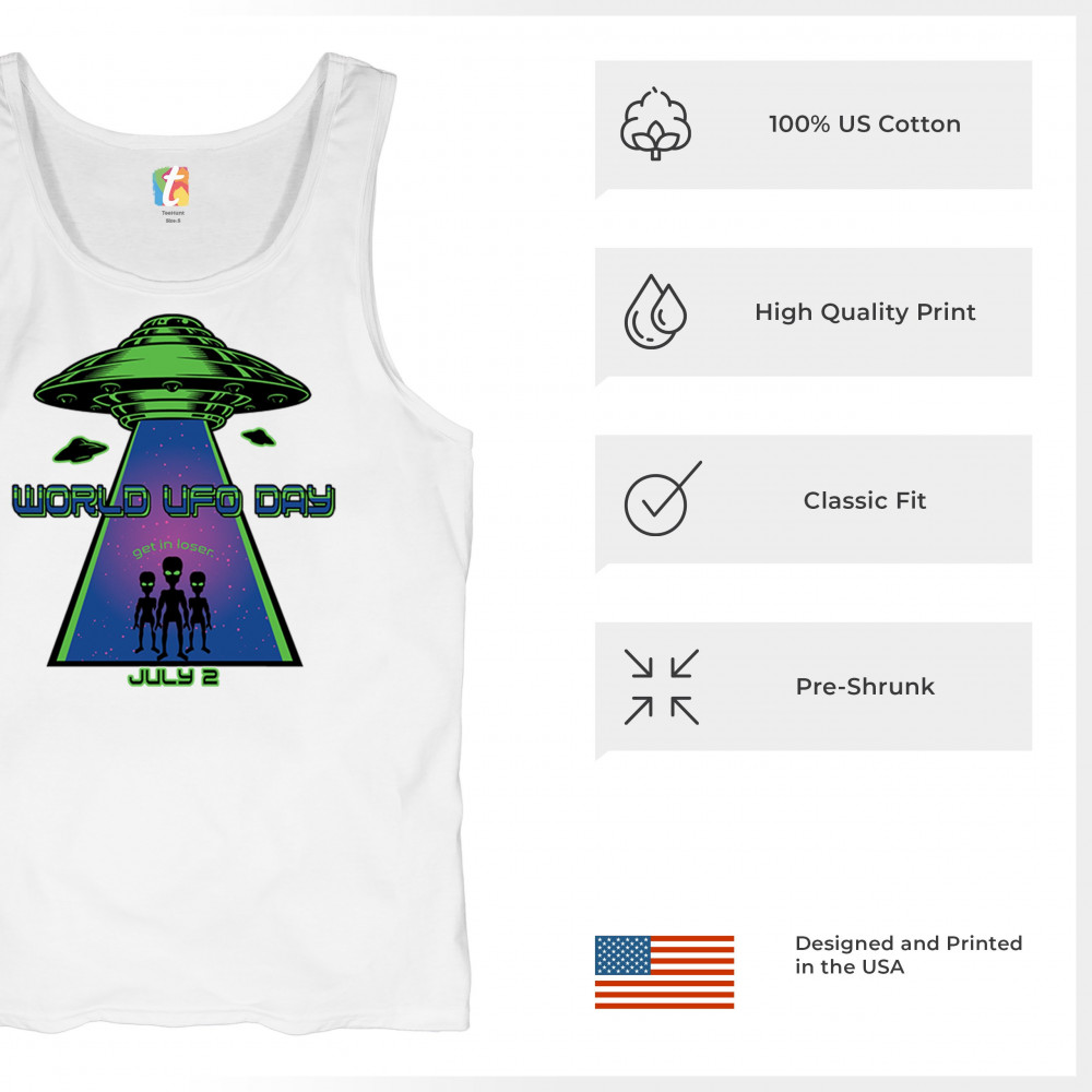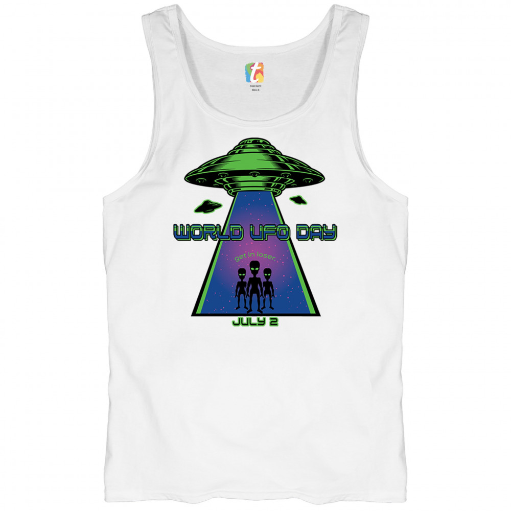 Join the celebration of World UFO Day with this unique design, featuring a detailed UFO beaming up three cheerful aliens with the phrase "Get in, loser." Perfect for those who are fascinated by the unknown and have a sense of humor about extraterrestrial life. Whether you're attending a UFO event, meeting with fellow enthusiasts, or just want to express your quirky style, this design is a must-have. Embrace the spirit of curiosity and fun with this eye-catching design for July 2nd.