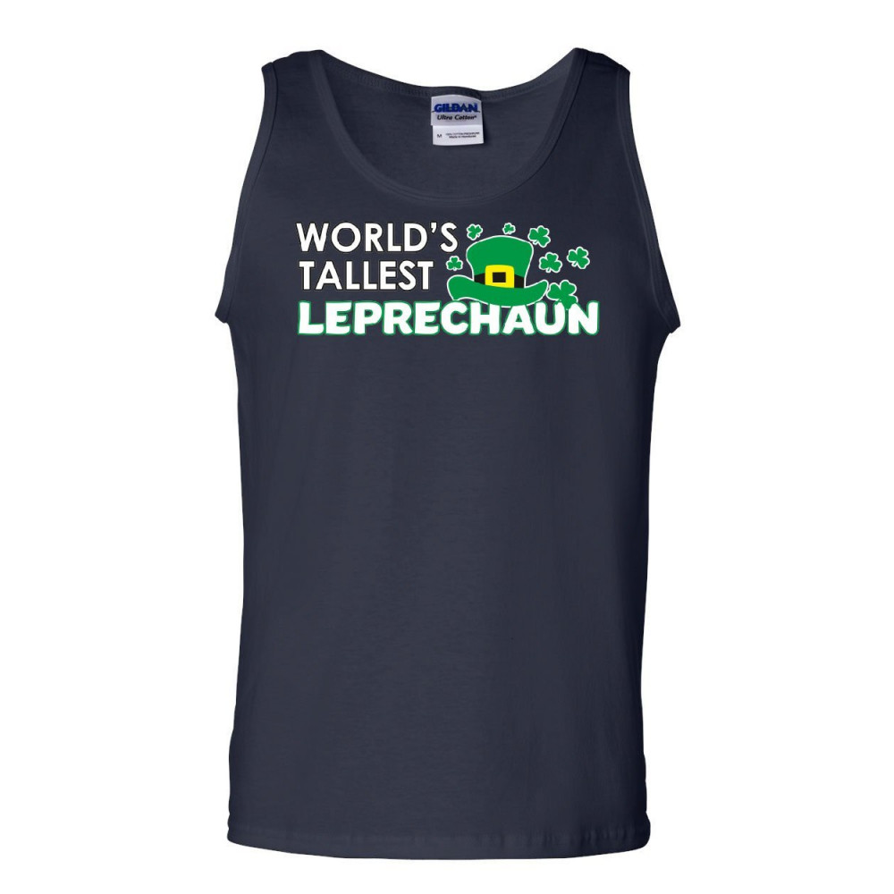WORLDS TALLEST LEPRECHAUN tank top st patrick's day shamrock beer sleeveless navy blue