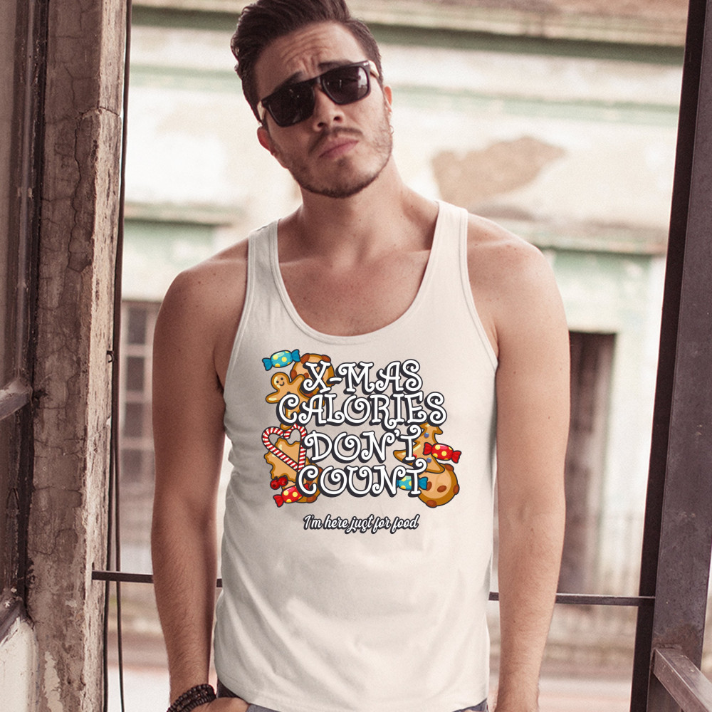 X-MAS CALORIES DON'T COUNT tank top merry christmas naughty or nice men's top white
