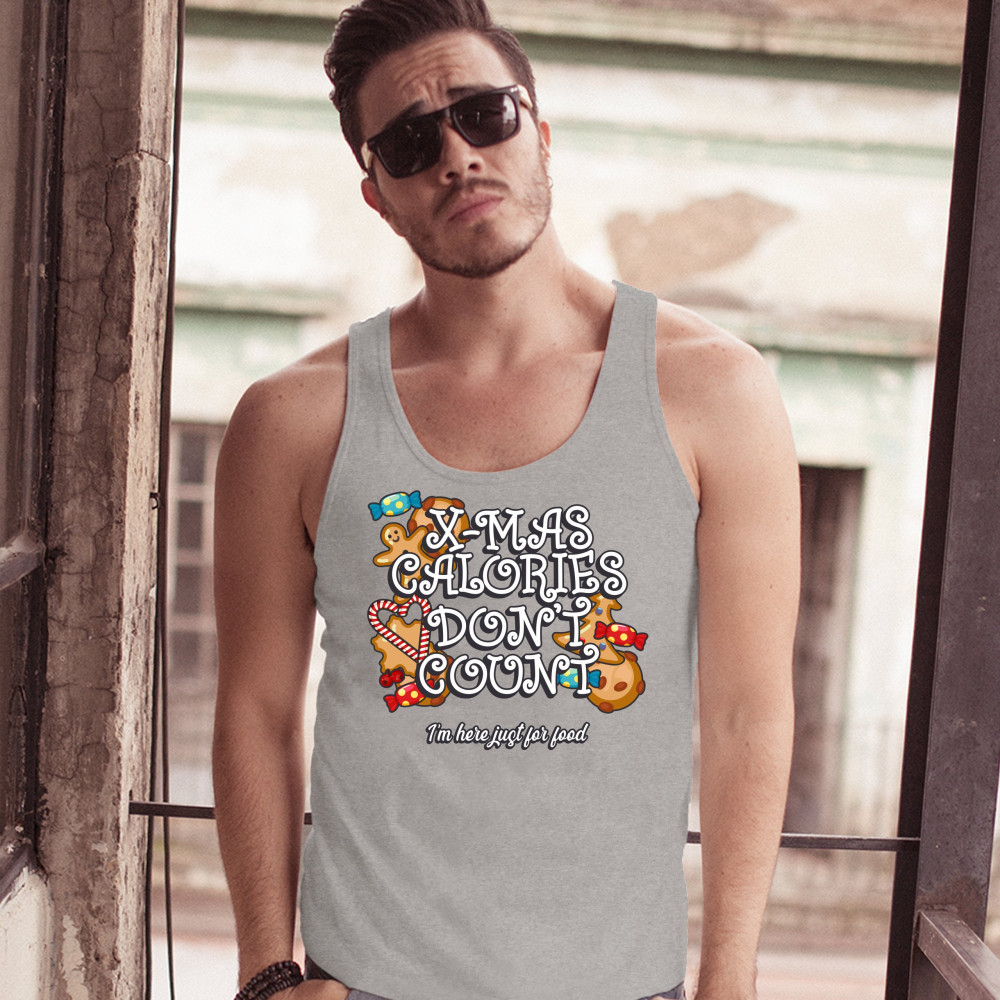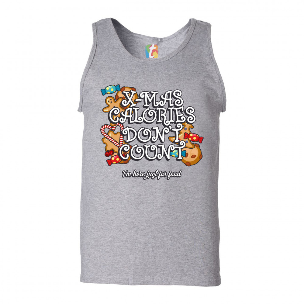 X-MAS CALORIES DON'T COUNT tank top merry christmas naughty or nice men's top gray