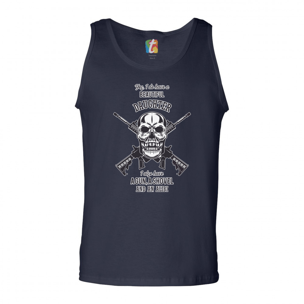 YES I DO HAVE A BEAUTIFUL DAUGHTER tank top father's day fatherhood men's top navy blue