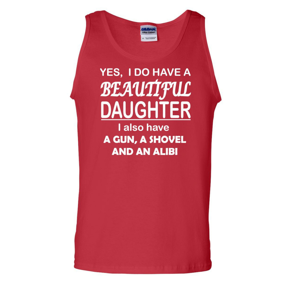 I DO HAVE A BEAUTIFUL DAUGHTER tank top funny dad father red