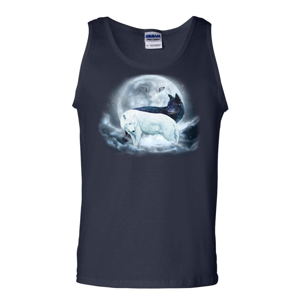 YIN & YANG WOLVES tank top animals wildlife nature wolf pack moon sleeveless navy blue