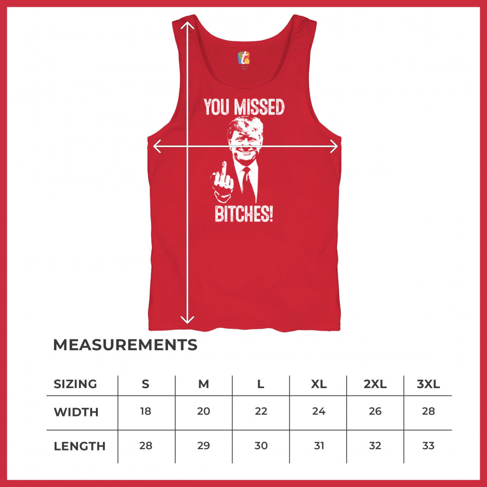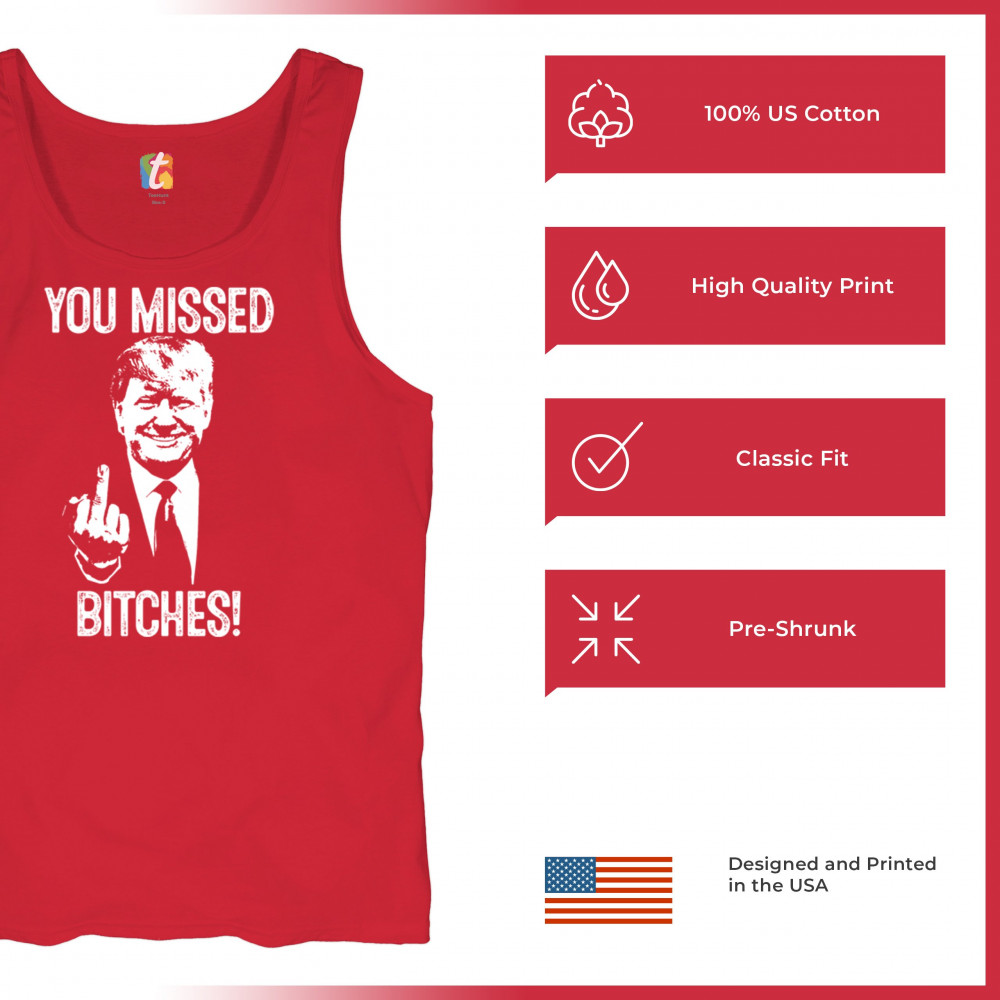 Commemorate Trump's resilience and determination with our bold "You Missed Bitches!" design. Show your support and patriotism.
