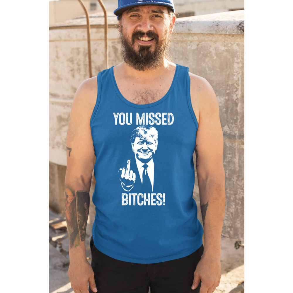 Commemorate Trump's resilience and determination with our bold "You Missed Bitches!" design. Show your support and patriotism.
