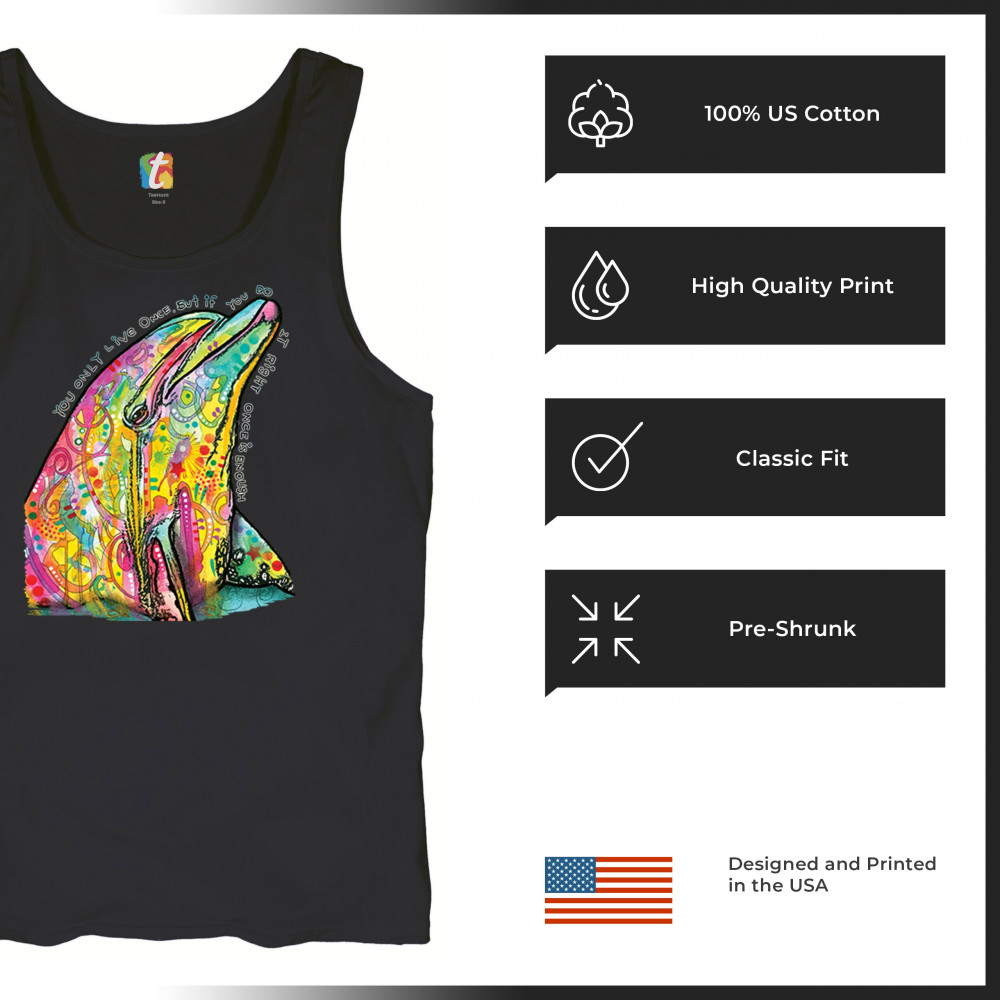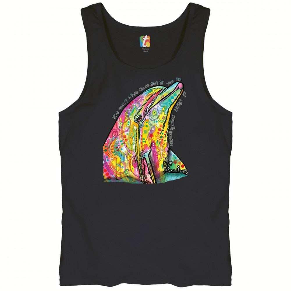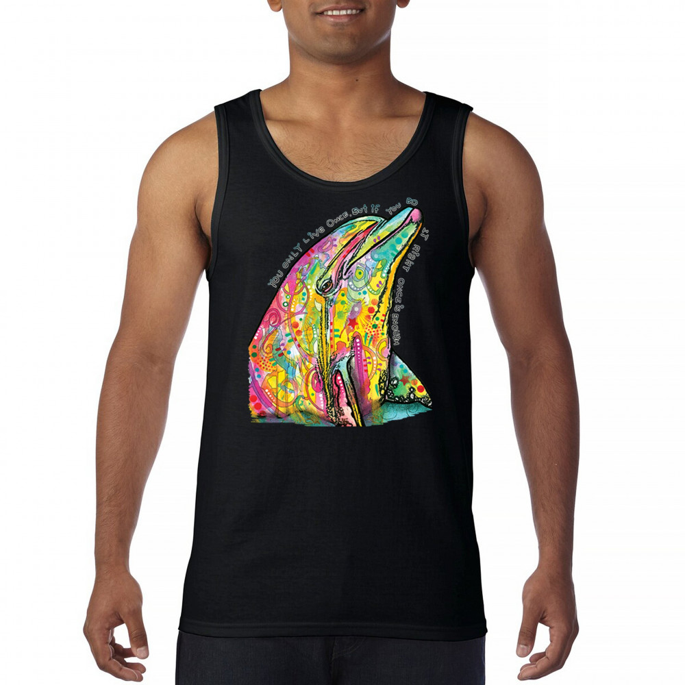 YOU ONLY LIVE ONCE tank top cute neon dolphin dean russo yolo men's top black