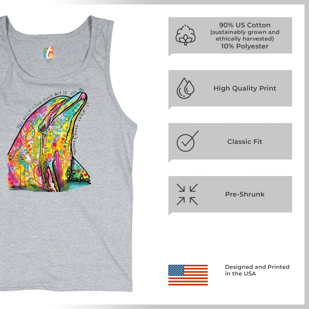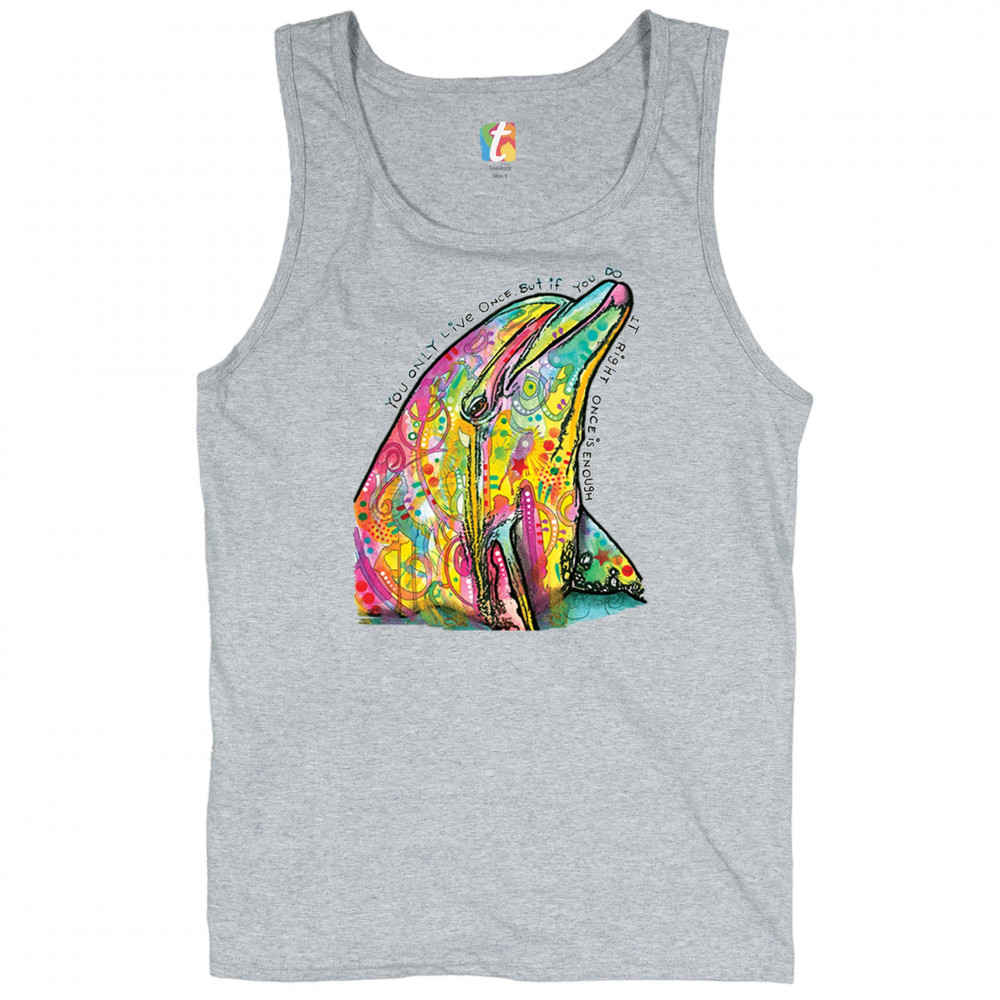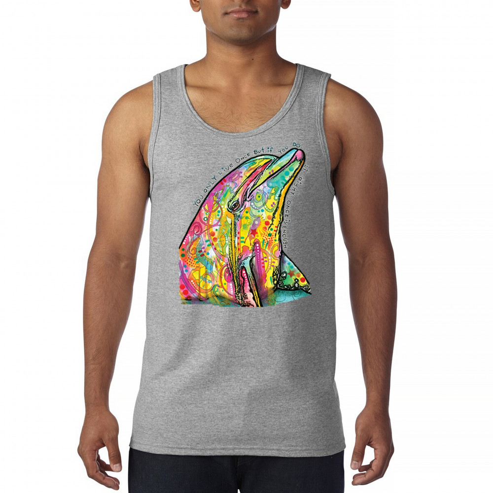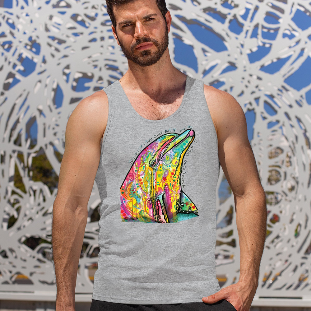 YOU ONLY LIVE ONCE tank top cute neon dolphin dean russo yolo men's top gray