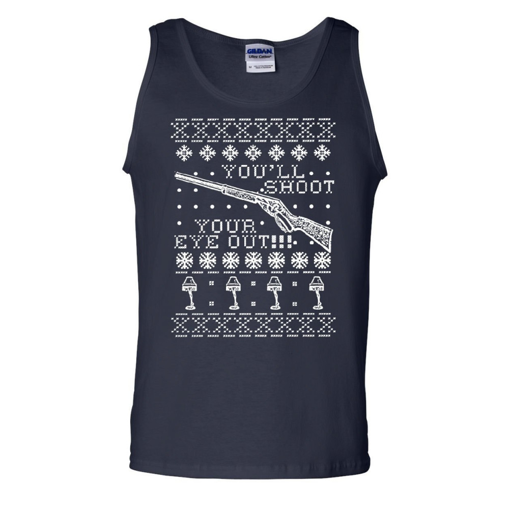 YOU'LL SHOOT YOUR EYE OUT tank top funny christmas ugly sweater xmas top navy blue