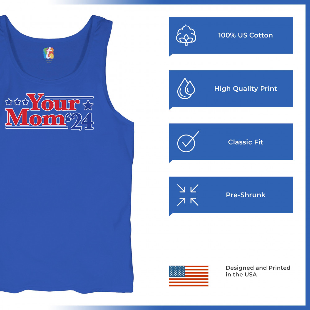 Our "Your Mom '24" design is a playful take on the upcoming election season, perfect for those who love to blend humor with their political views. Made from premium materials, this design offers both comfort and style, making it ideal for any occasion. Whether you're heading to a political event, a casual meetup, or just enjoying a day out, this design is sure to turn heads and spark conversations. Get one for yourself and spread the laughter among friends and family.