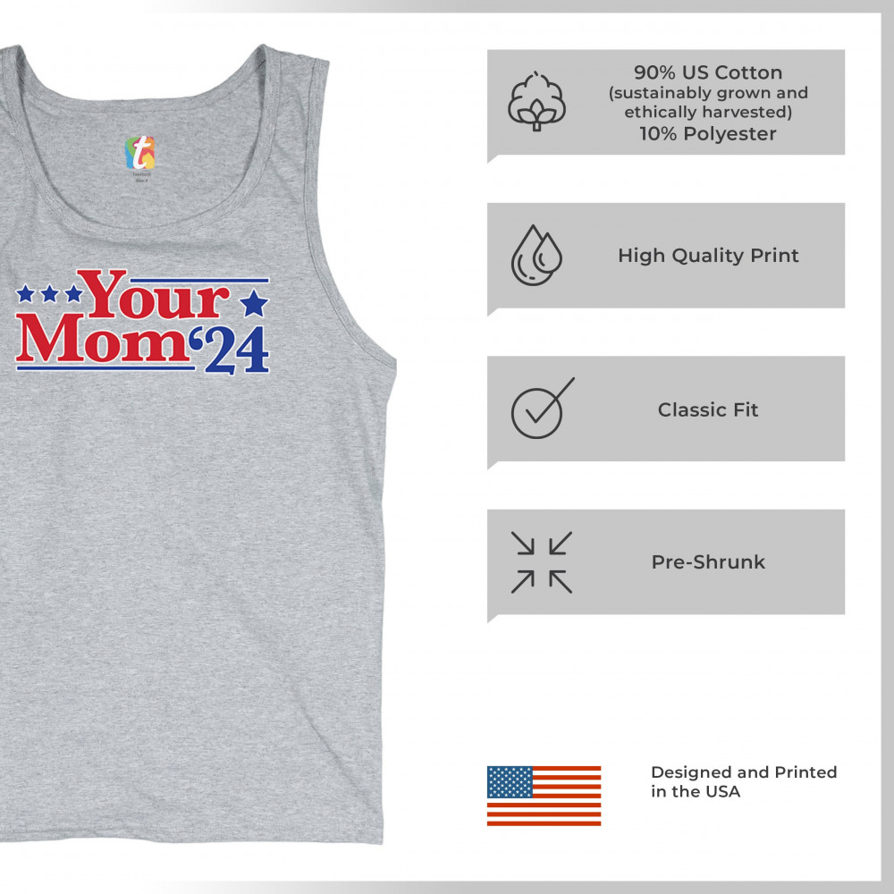 Our "Your Mom '24" design is a playful take on the upcoming election season, perfect for those who love to blend humor with their political views. Made from premium materials, this design offers both comfort and style, making it ideal for any occasion. Whether you're heading to a political event, a casual meetup, or just enjoying a day out, this design is sure to turn heads and spark conversations. Get one for yourself and spread the laughter among friends and family.