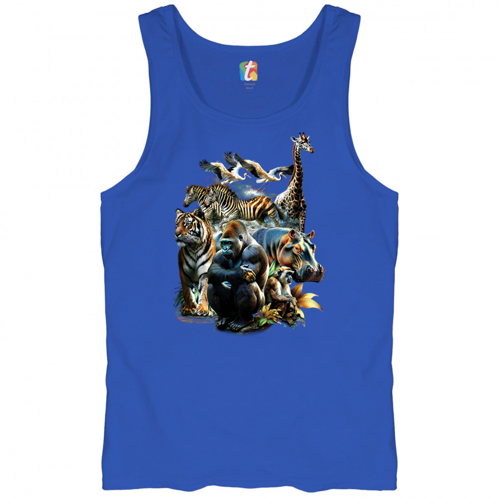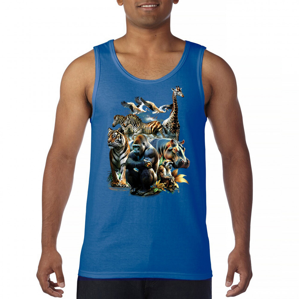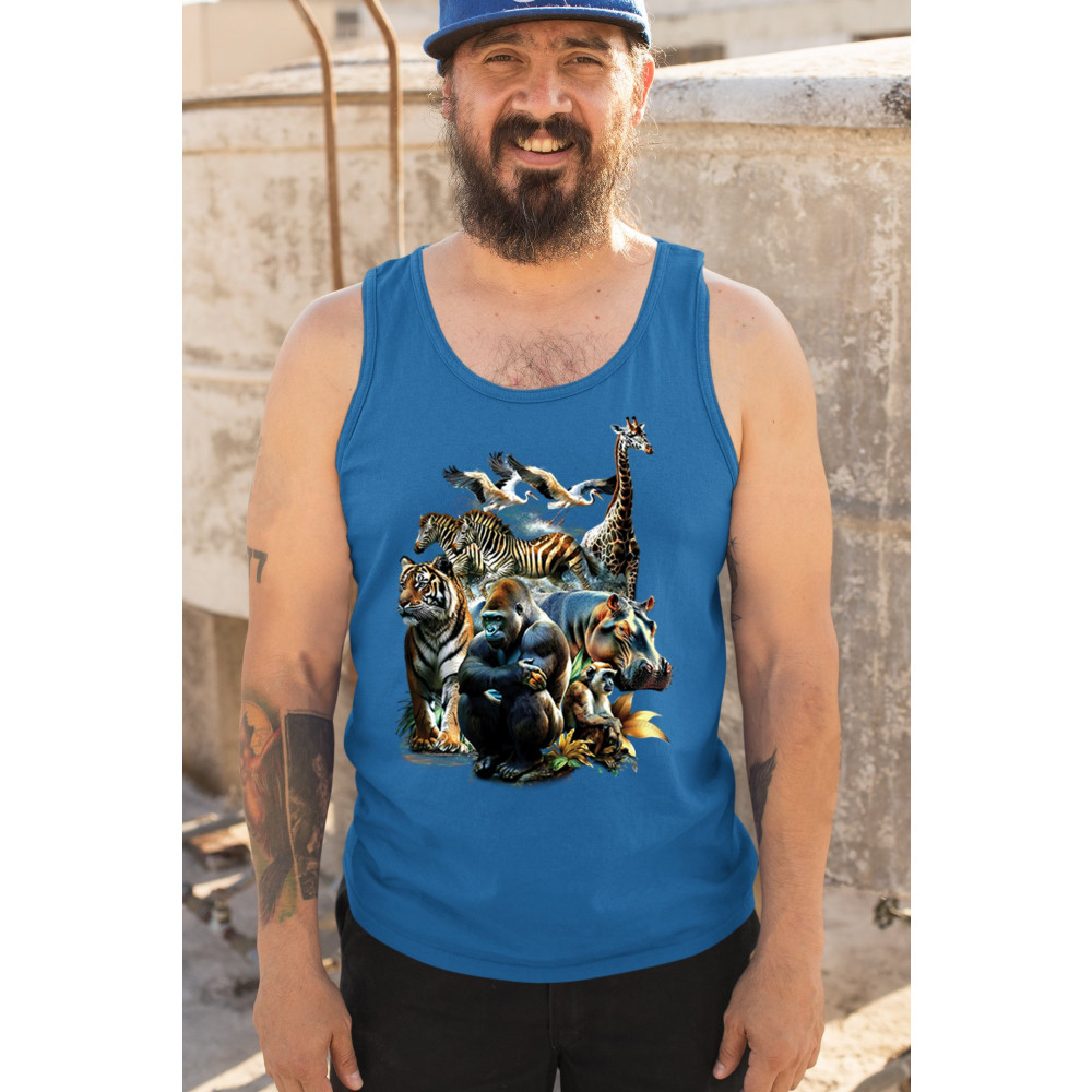 Packed with fierce energy and vibrant color, this wildlife design features a jungle coalition of gorilla, tiger, monkey, zebra, giraffe, hippo, and birds. A powerful tribute to animal beauty, biodiversity, and nature's harmony. Perfect for jungle tour enthusiasts, zoo visitors, or anyone passionate about wild conservation and stunning creature art.