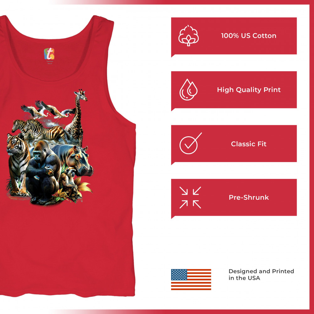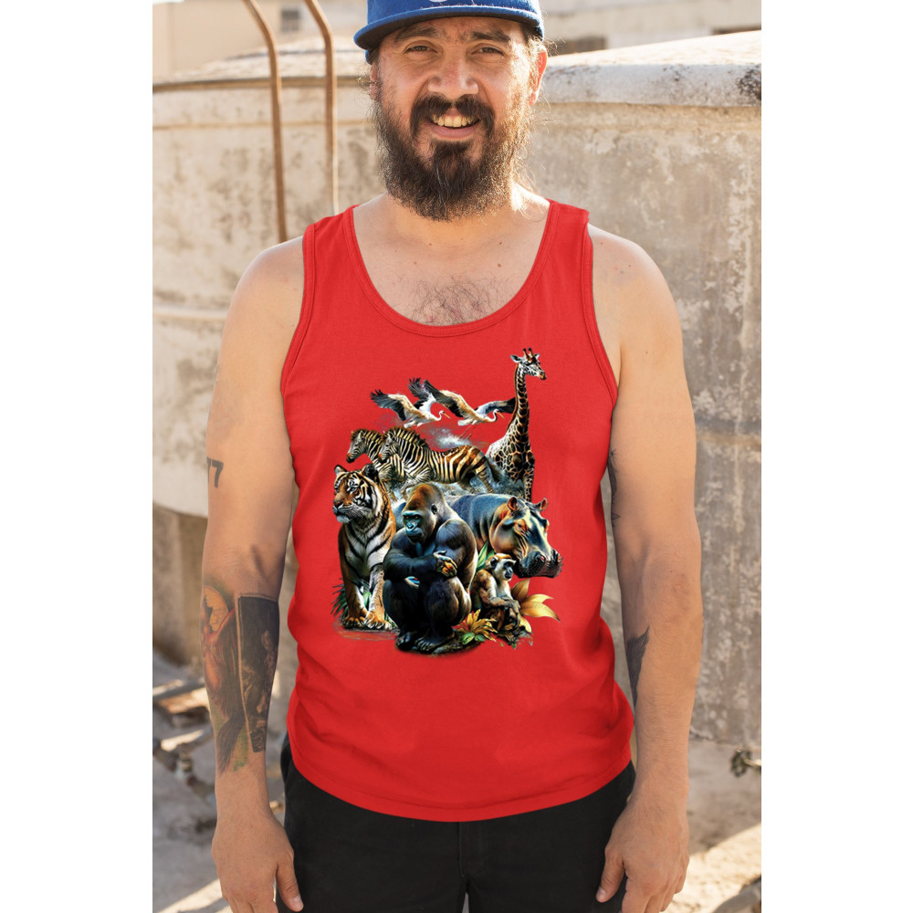 Packed with fierce energy and vibrant color, this wildlife design features a jungle coalition of gorilla, tiger, monkey, zebra, giraffe, hippo, and birds. A powerful tribute to animal beauty, biodiversity, and nature's harmony. Perfect for jungle tour enthusiasts, zoo visitors, or anyone passionate about wild conservation and stunning creature art.