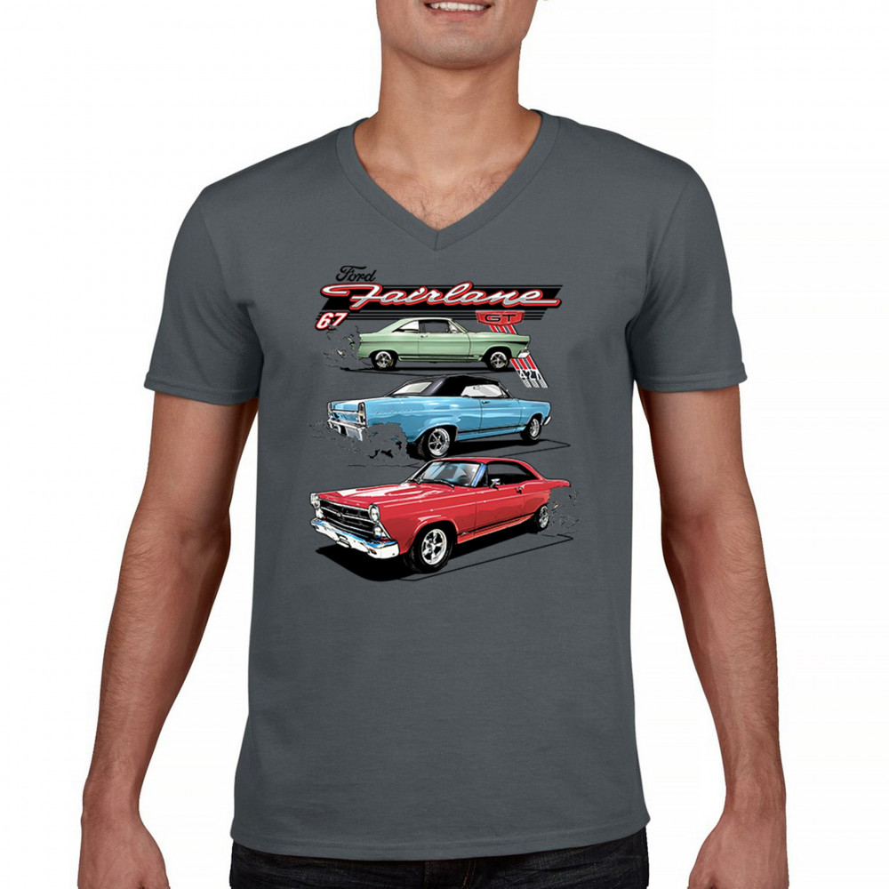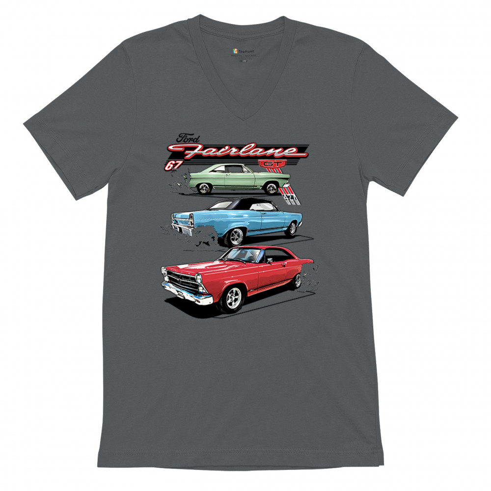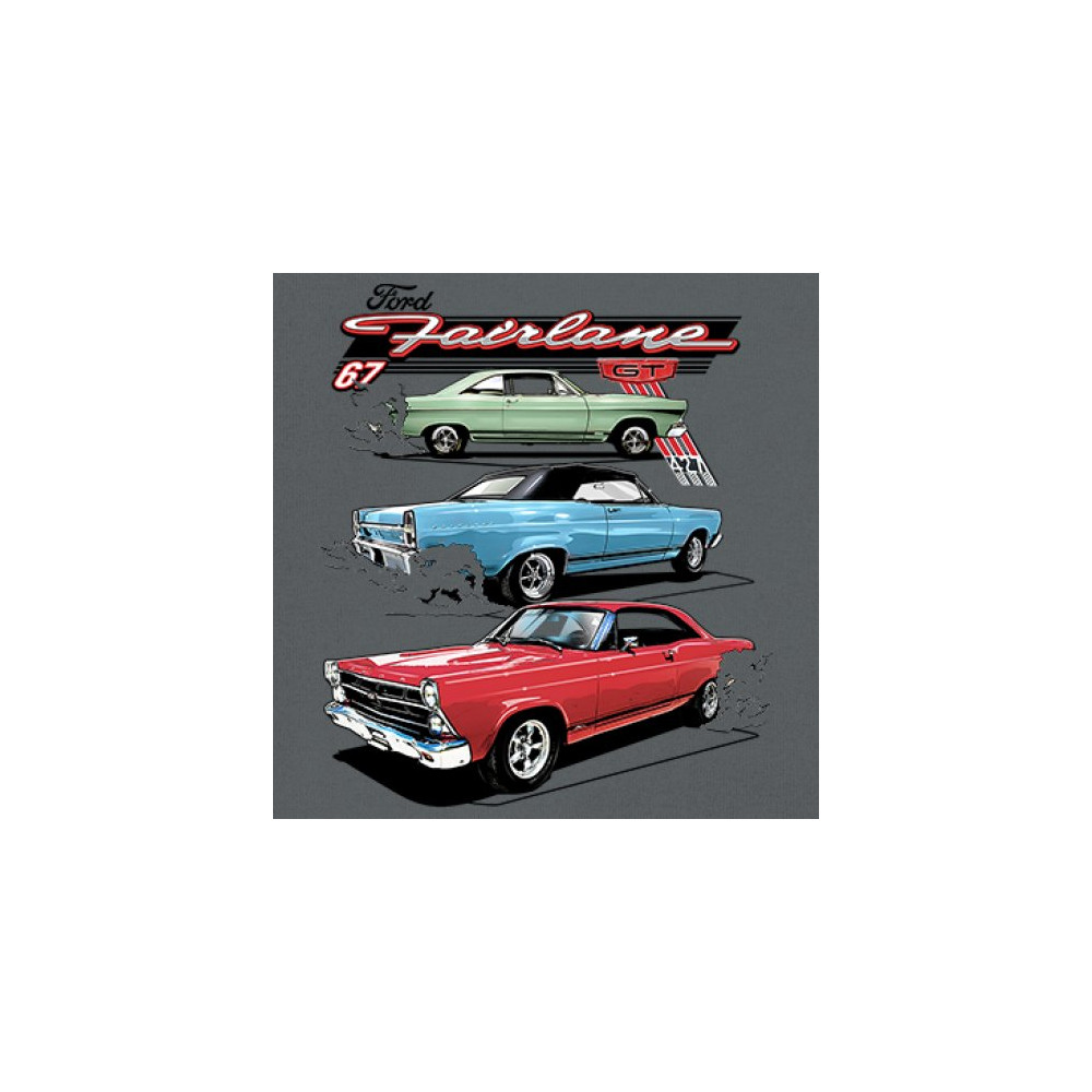 Features three 1967 Ford Fairlane GTs with retro burnout style. Great for muscle car fans, Ford collectors, car shows, and vintage meetups.
