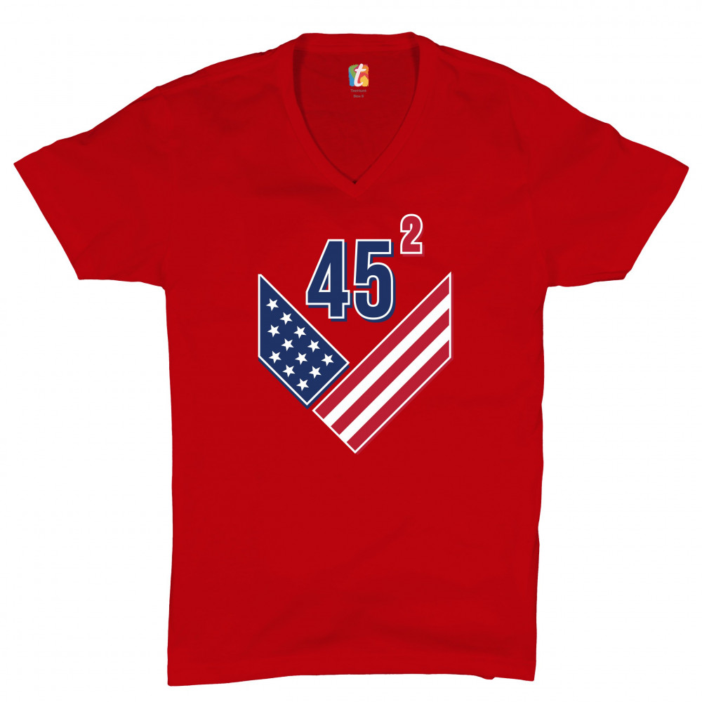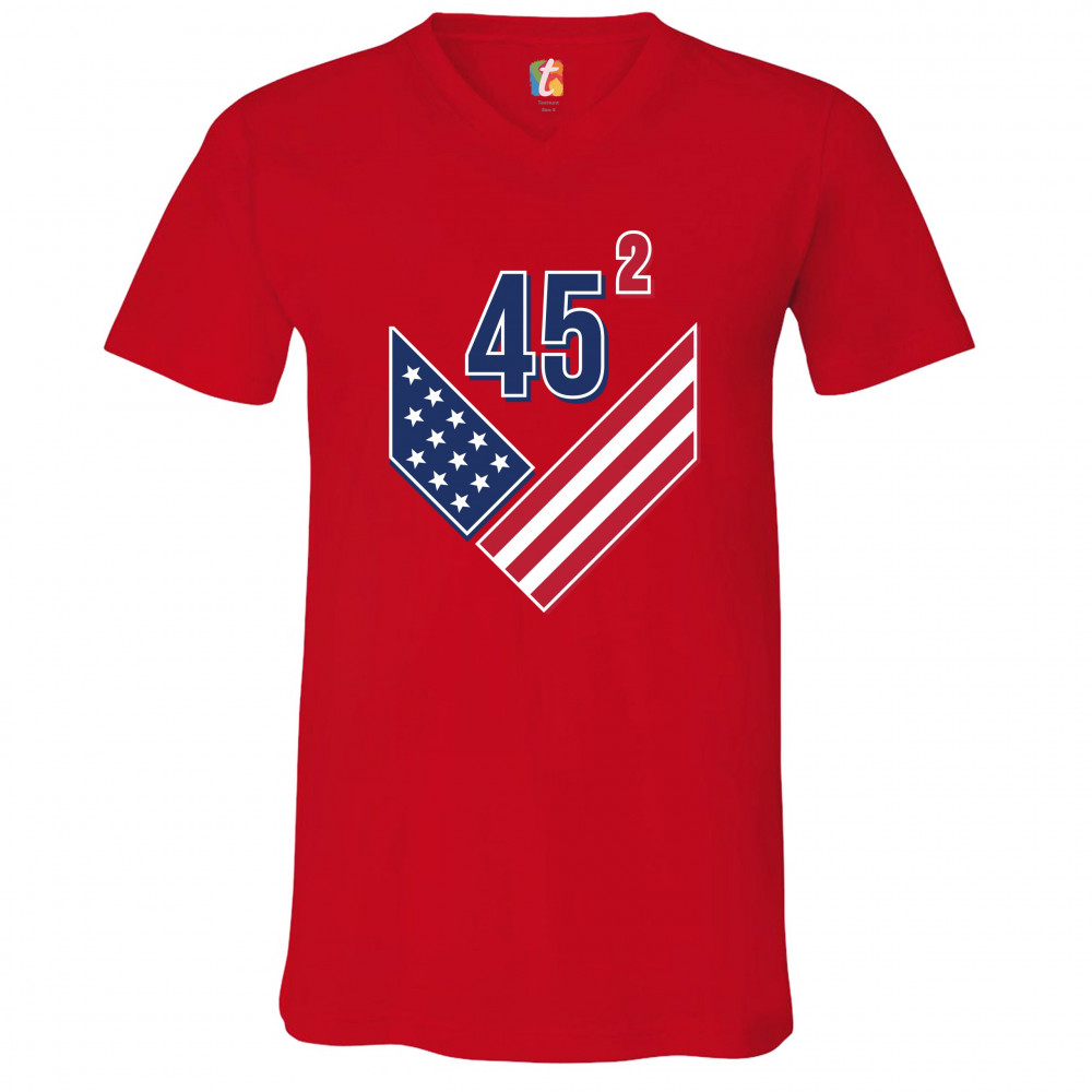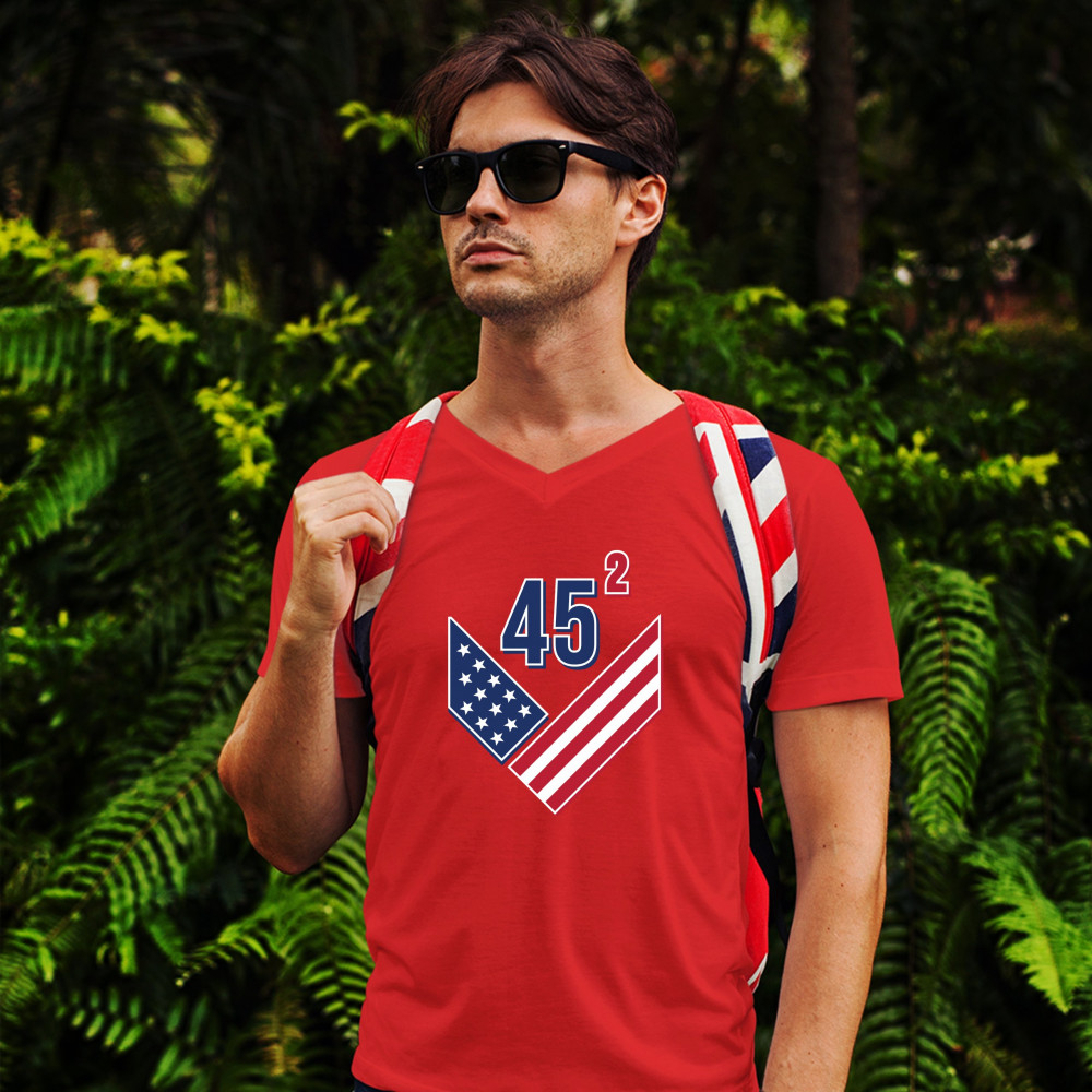 45 SQUARED v-neck t-shirt two terms re-elect donald trump conservative tee red