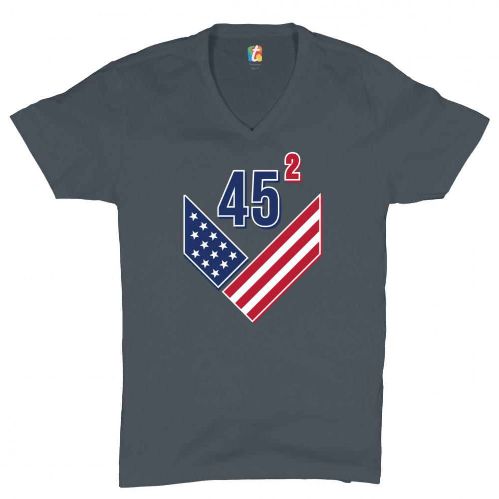 45 SQUARED v-neck t-shirt two terms re-elect donald trump conservative tee charcoal