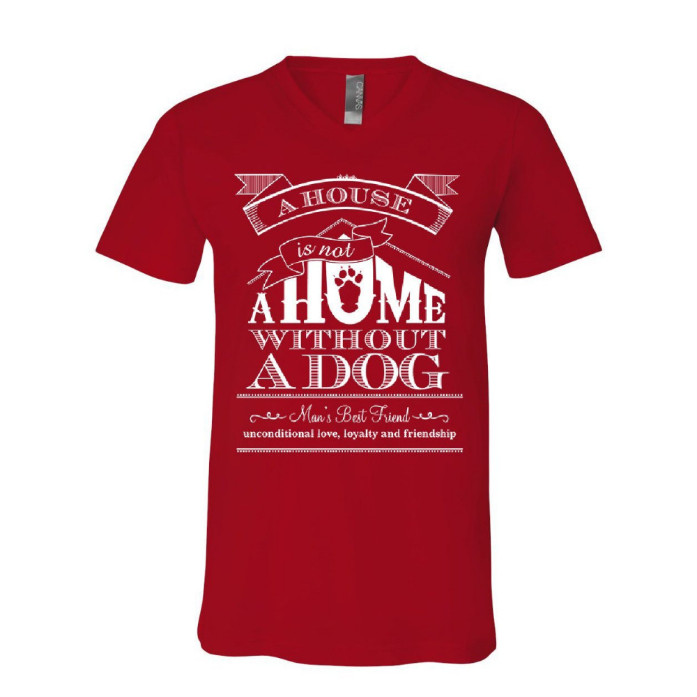 A HOUSE IS NOT A HOME WITHOUT A DOG v-neck t-shirt pet paw labrador tee red