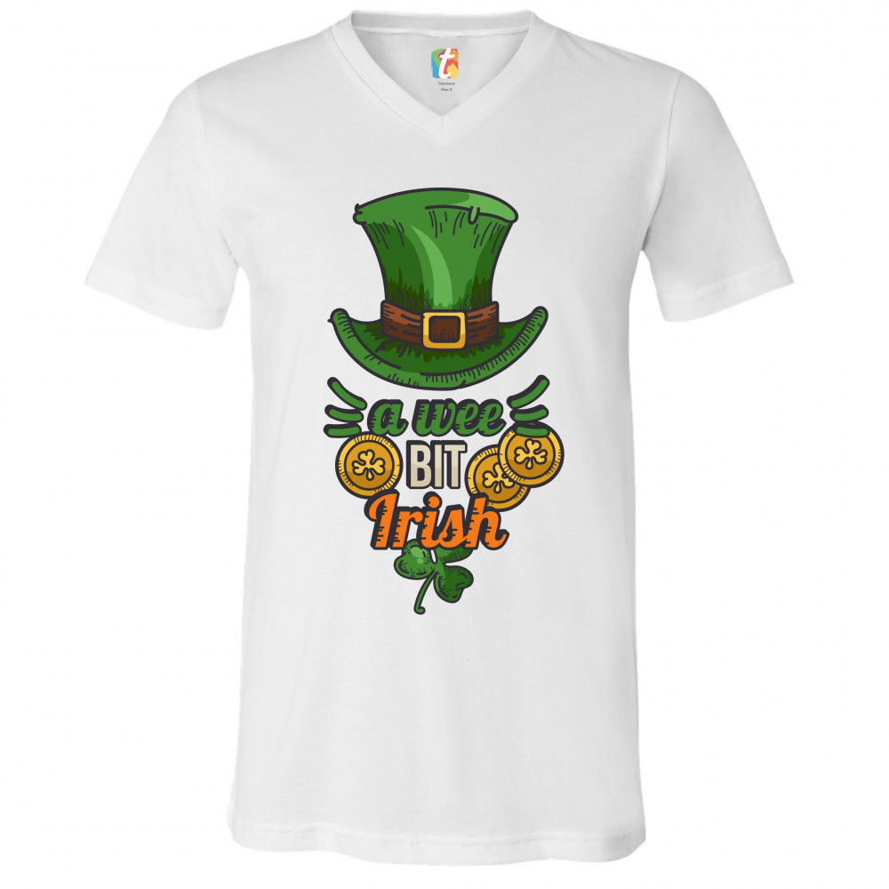 A WEE BIT IRISH v-neck t-shirt st. patrick's day shamrock leprechaun hat tee white