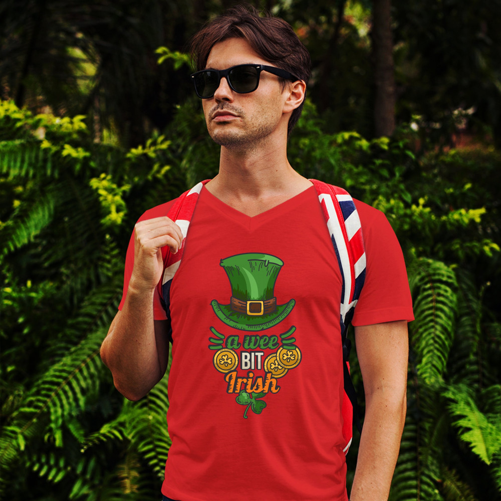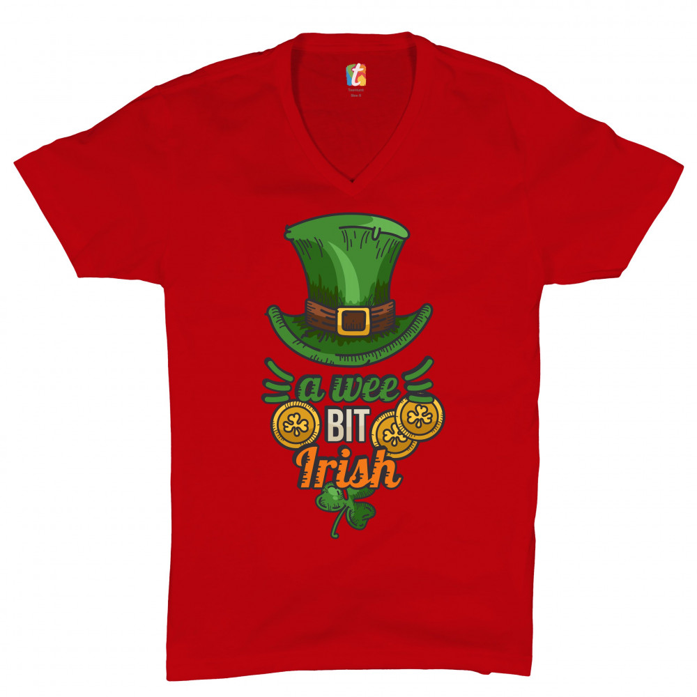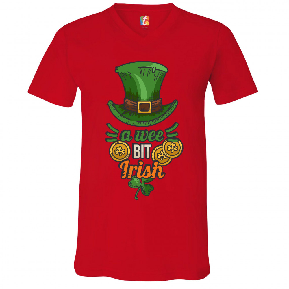 A WEE BIT IRISH v-neck t-shirt st. patrick's day shamrock leprechaun hat tee red