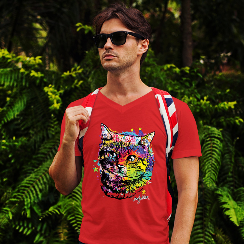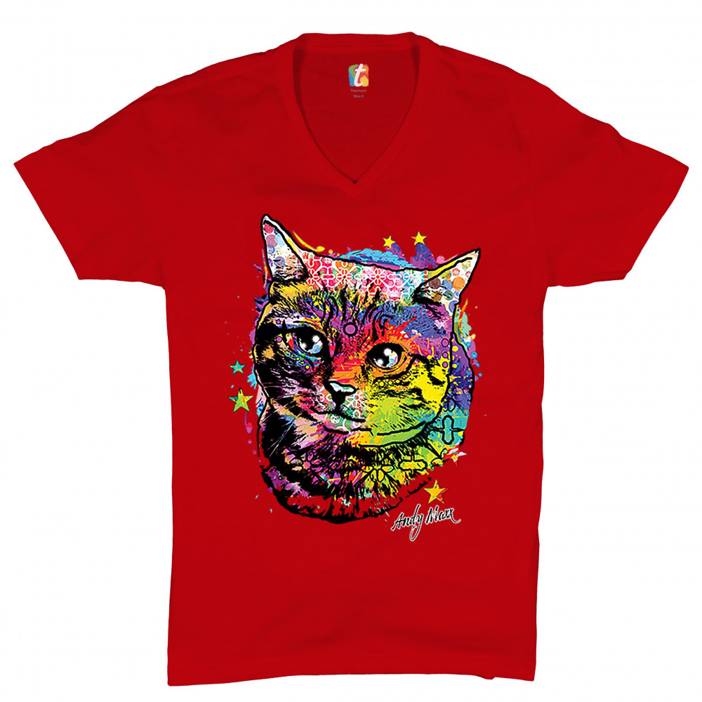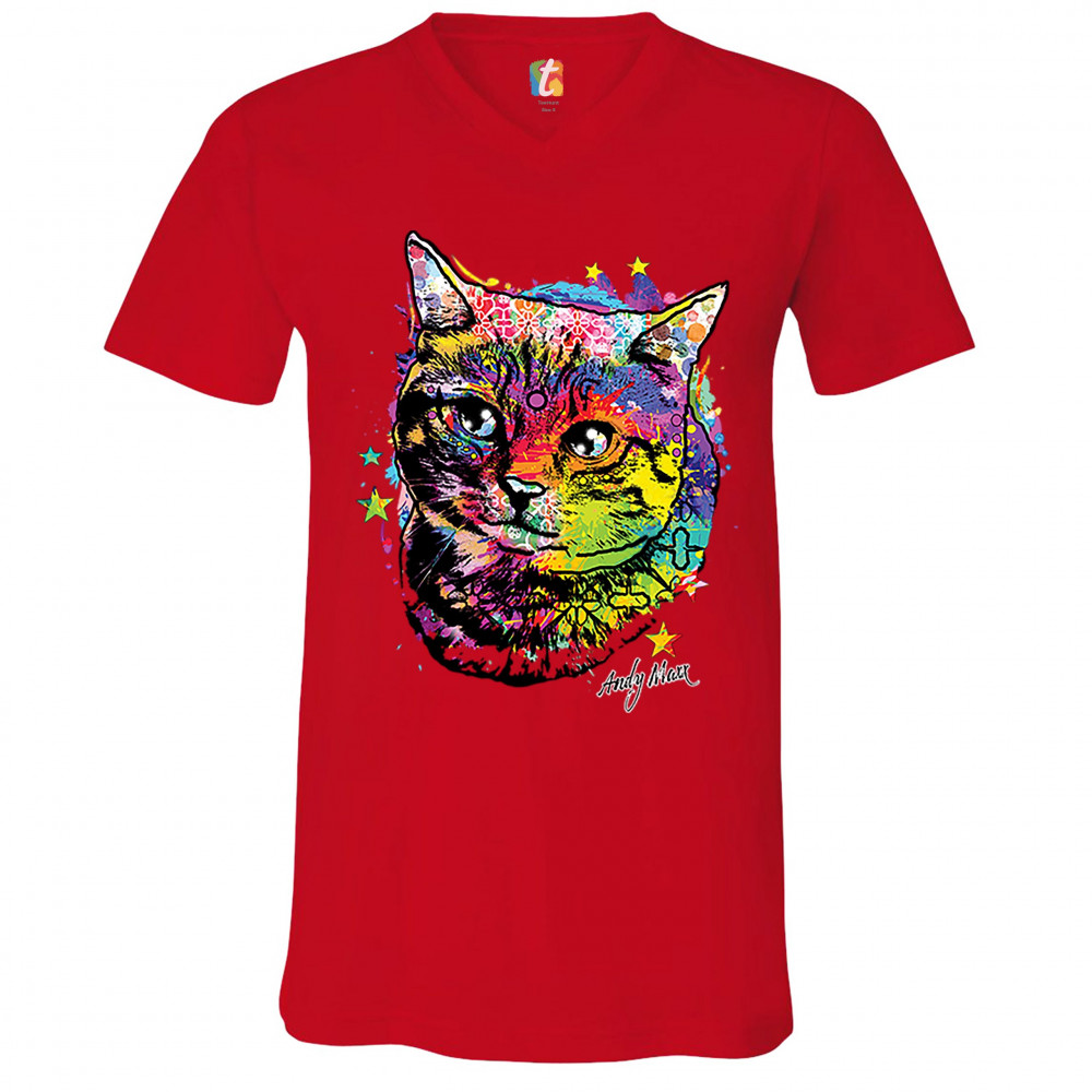 ADORABLE KITTEN v-neck t-shirt neon multicolor kitty andy maxx cat lover tee red