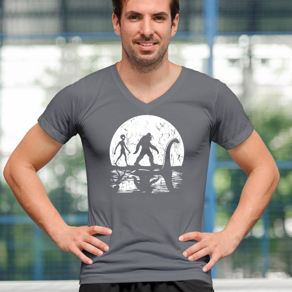 Step into a realm where conspiracy theory meets pop culture with our unique design, blending the intrigue of Area 51 aliens with the mystique of legendary monsters like Big Foot and the primal power of dinosaurs. It's a piece that speaks to the universe's vast mysteries, making for perfect nerd-centric gifts or a vintage addition to your own collection. Embrace the legacy of Godzilla and the whispers of conspiracy with this enthralling design.