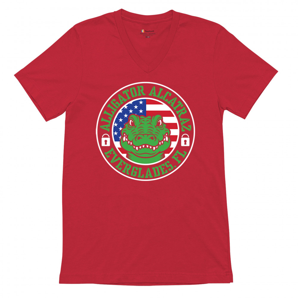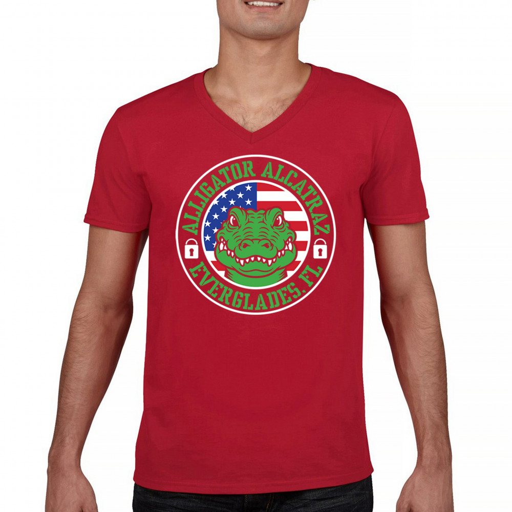 Bold Alligator Alcatraz design with USA flag and conservative message. Patriotic, America First, and proud to take a stand for national values.
