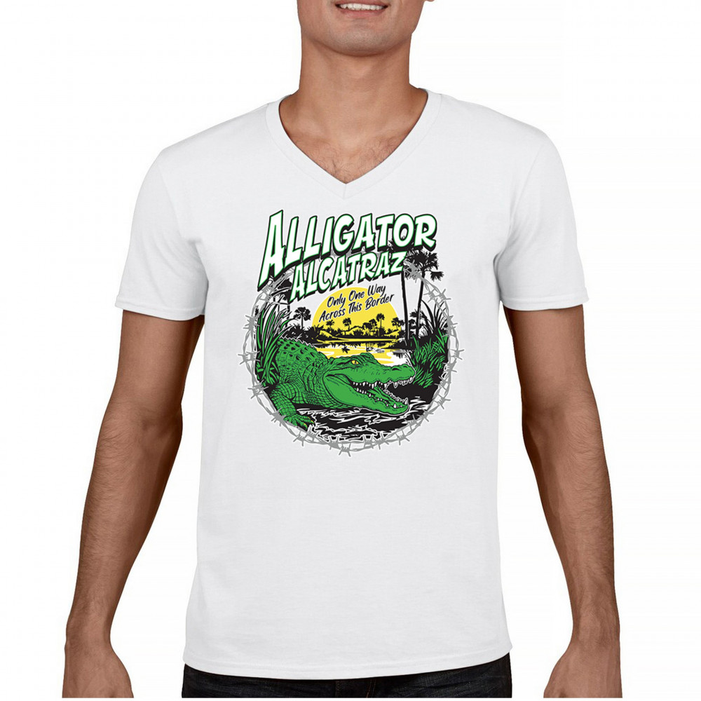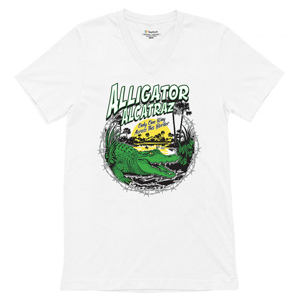 Alligator Alcatraz design with border security message. For conservative, Republican, and patriotic Americans who stand for America First values.