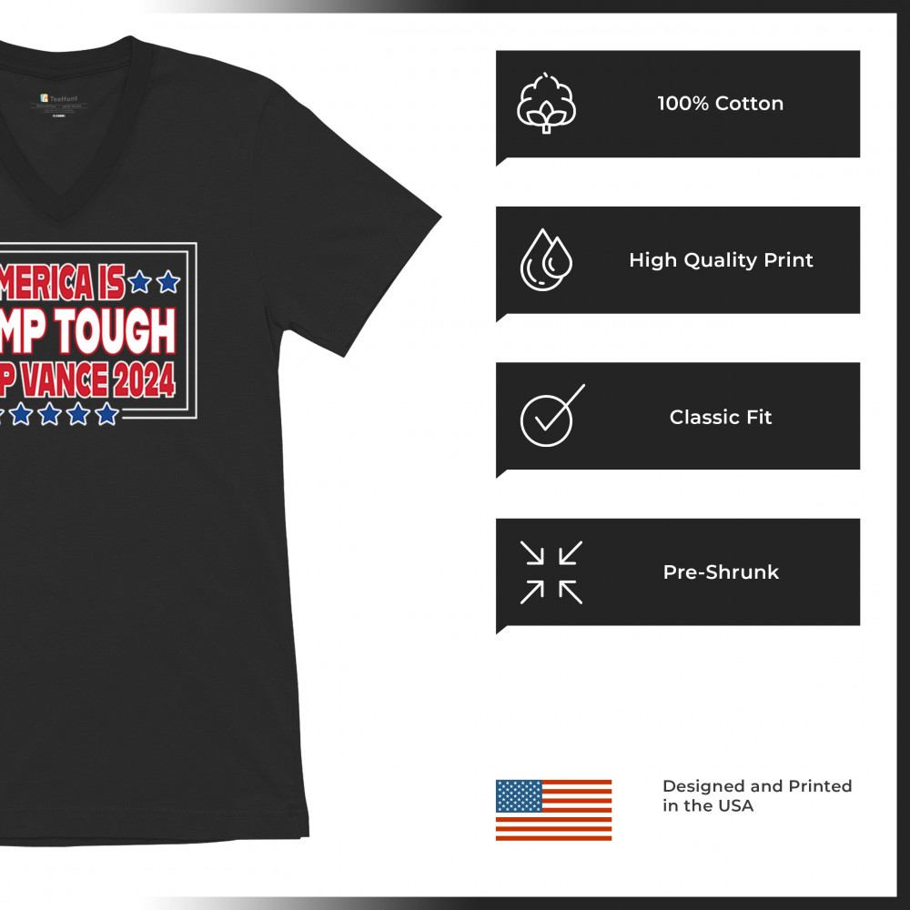 Support Trump and Vance in 2024 with this bold, patriotic design, perfect for rallies and everyday wear. Stand for America First principles and conservative values.