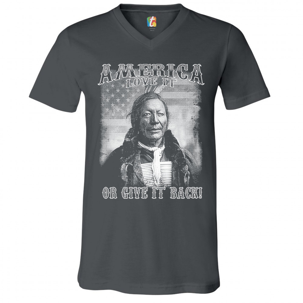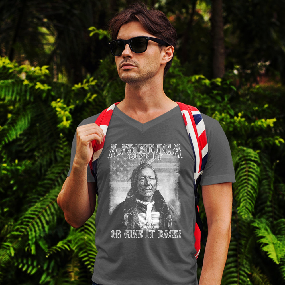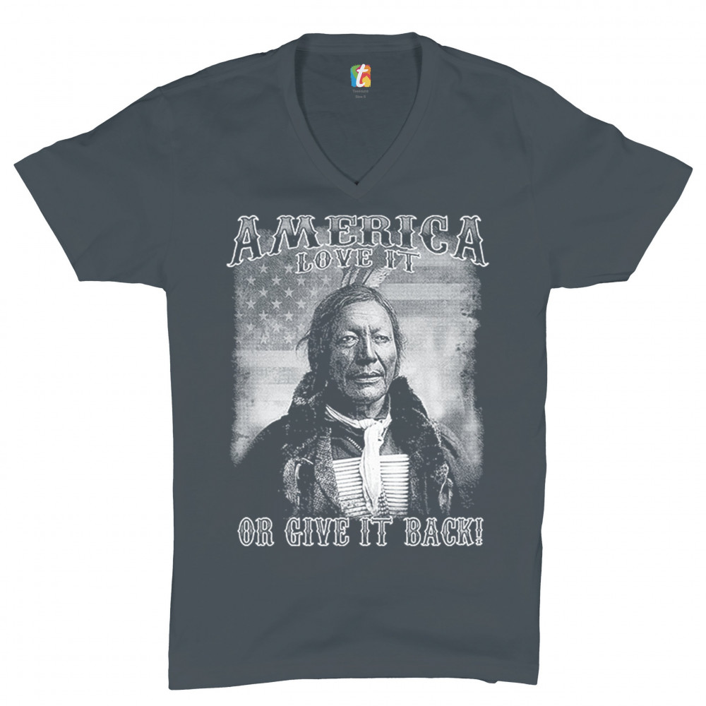 AMERICA LOVE IT OR GIVE IT BACK v-neck t-shirt native american chief tee charcoal