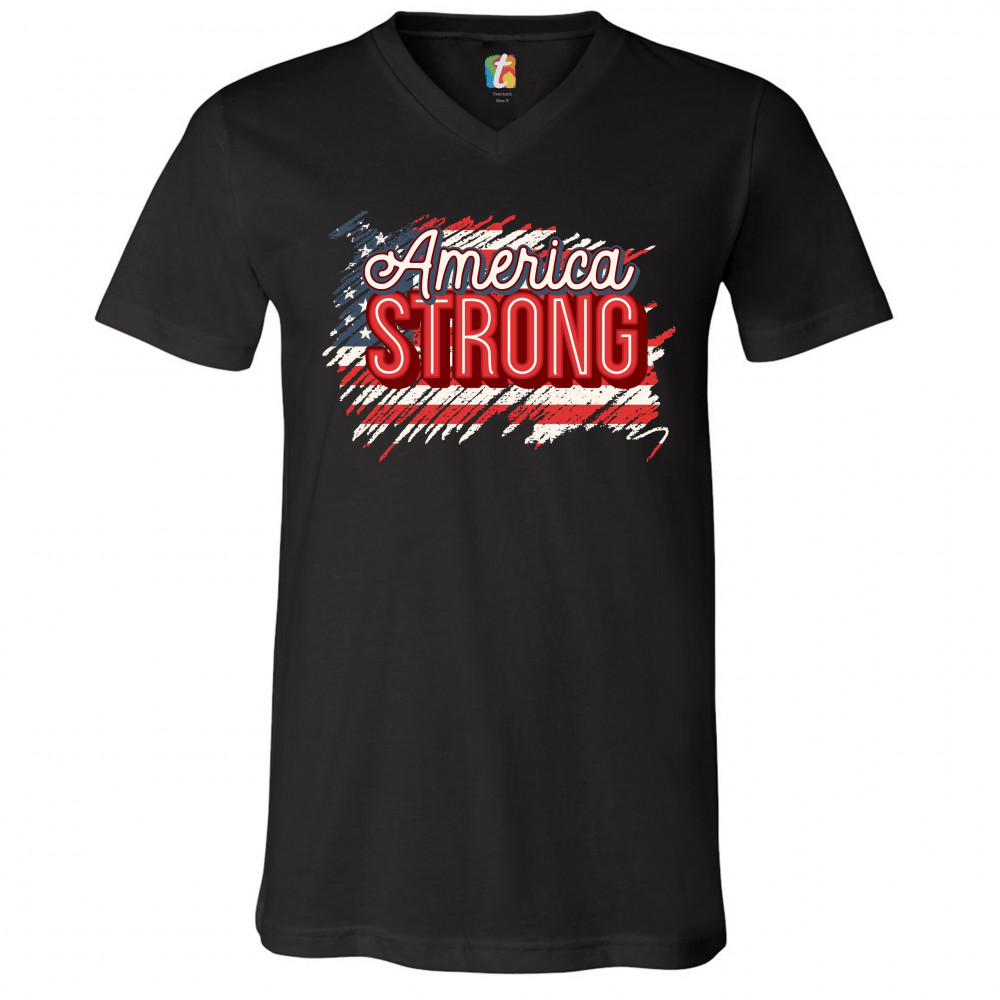 AMERICA STRONG v-neck t-shirt distressed american flag 4th of july usa tee black