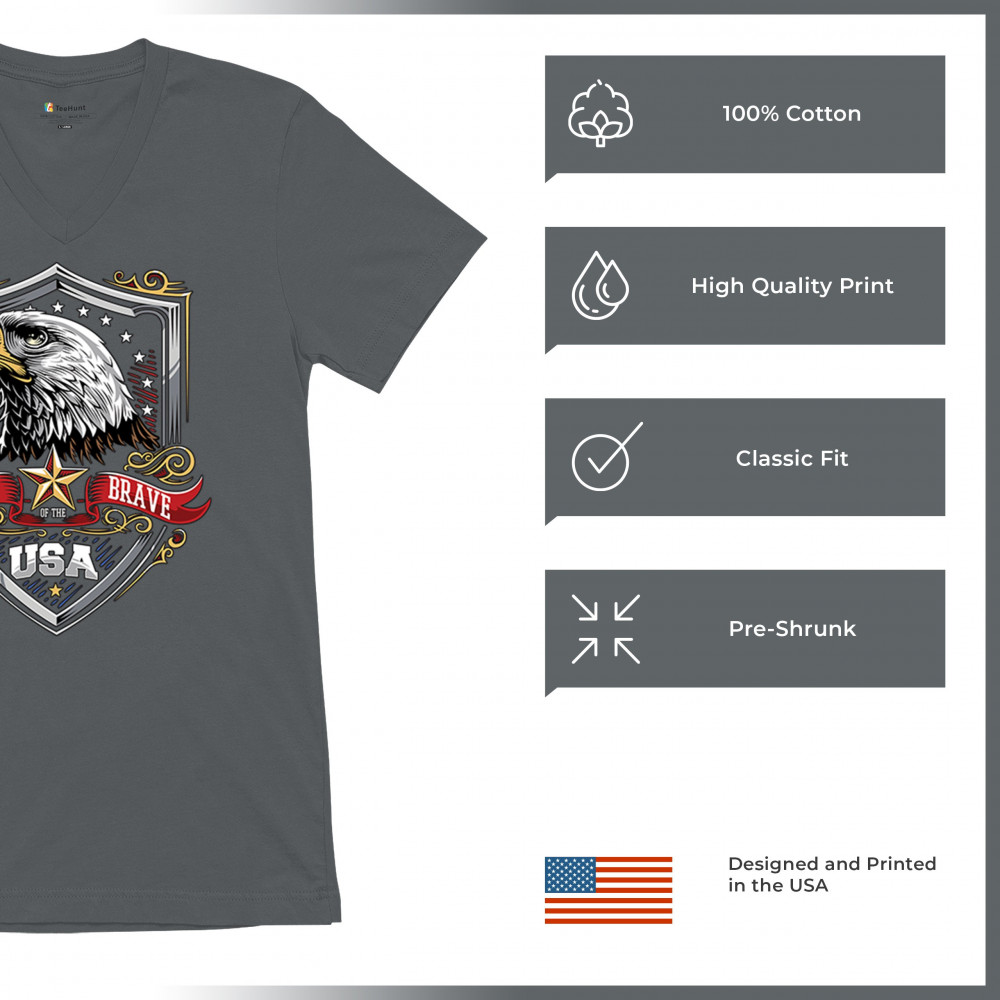Honor American spirit with this patriotic eagle shield design shirt. Featuring a bold bald eagle emblem, stars and stripes shield, and red white blue accents, it’s perfect for Veteran’s Day, 4th of July, and military pride. A true American pride shirt for those who live by “home of the brave, land of the free.â€