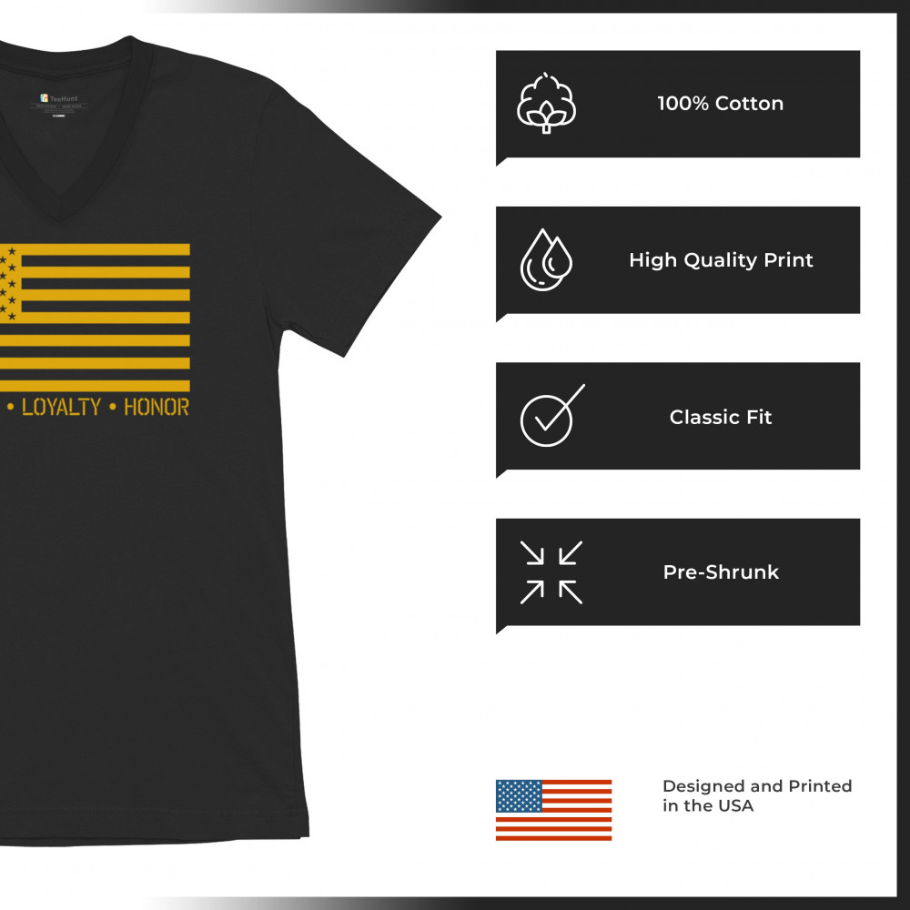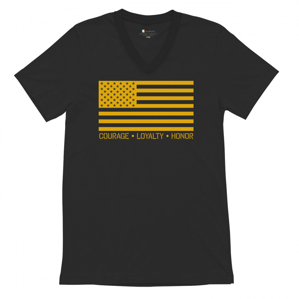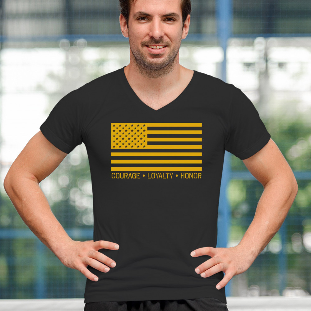 AMERICAN FLAG COURAGE LOYALTY HONOR v-neck t-shirt military air force army tee black