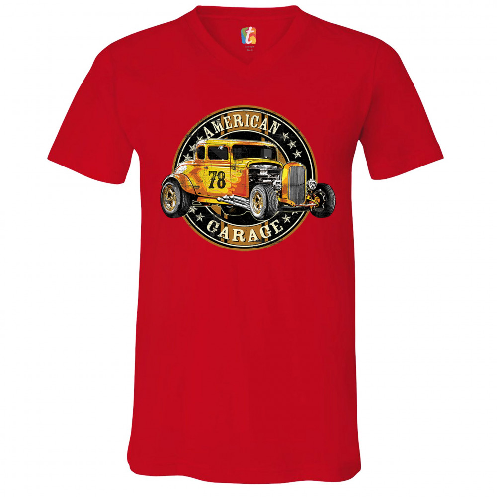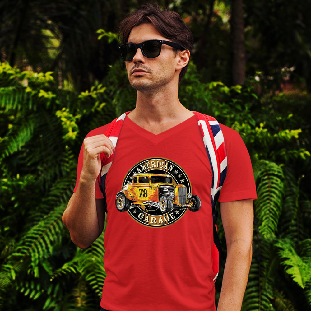 AMERICAN GARAGE v-neck t-shirt retro hot rod vintage american muscle tee red