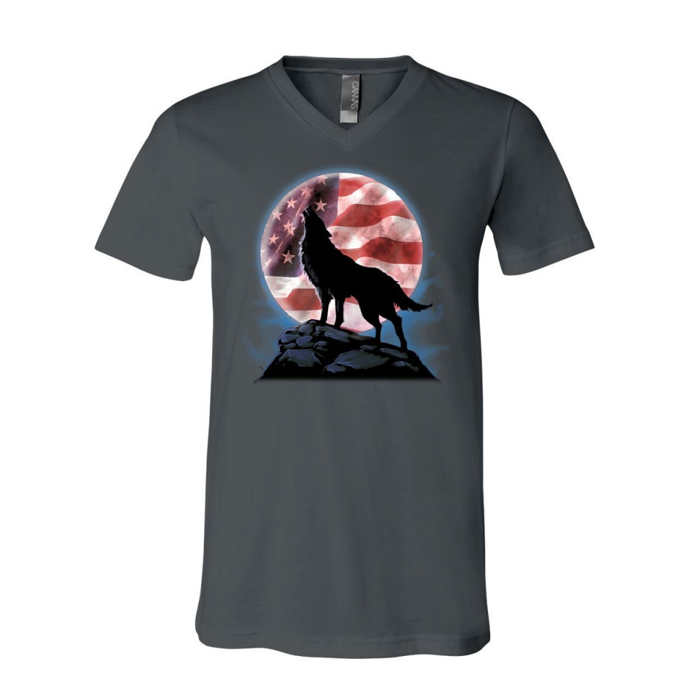 AMERICAN HOWLING WOLF v-neck t-shirt wildlife animal wolves wilderness tee charcoal