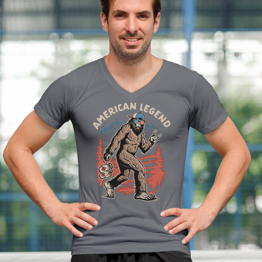 Funny Bigfoot design with patriotic flair—ideal for BBQs, beer lovers, campers, and cryptid fans who love to party in style!